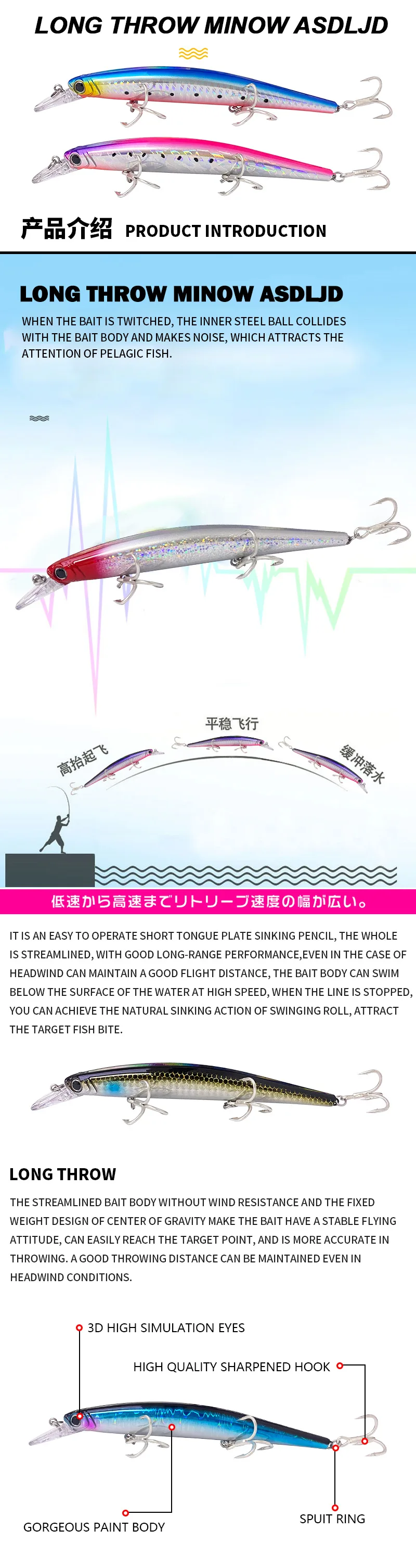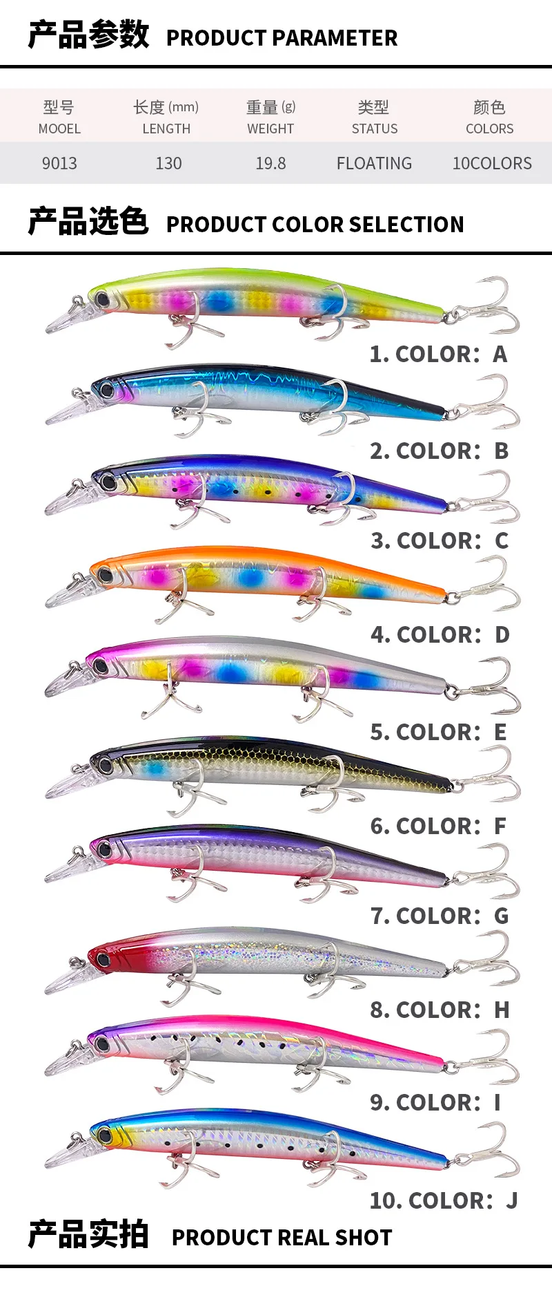Cebo Minnow 130mm/19,8g cebo de pesca flotante pesca en el mar señuelo duro cebo falso señuelo biomimético trae tres anzuelos