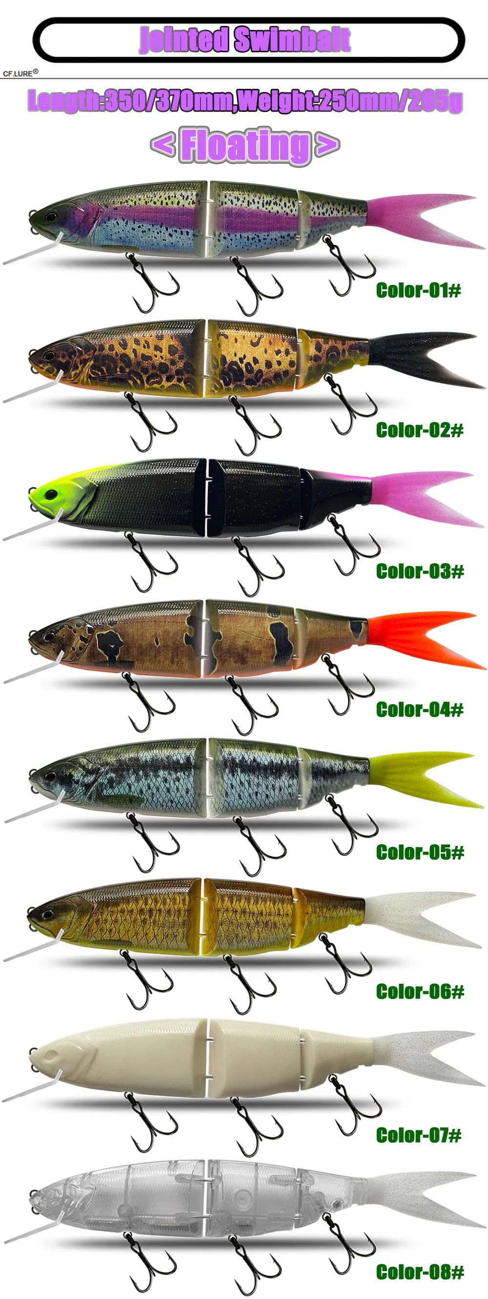 Cebo de natación con broche de 27 colores, tamaño de 350mm, sección de cebo duro gigante flotante articulado para cebo grande, Lucio, Klash Ghost