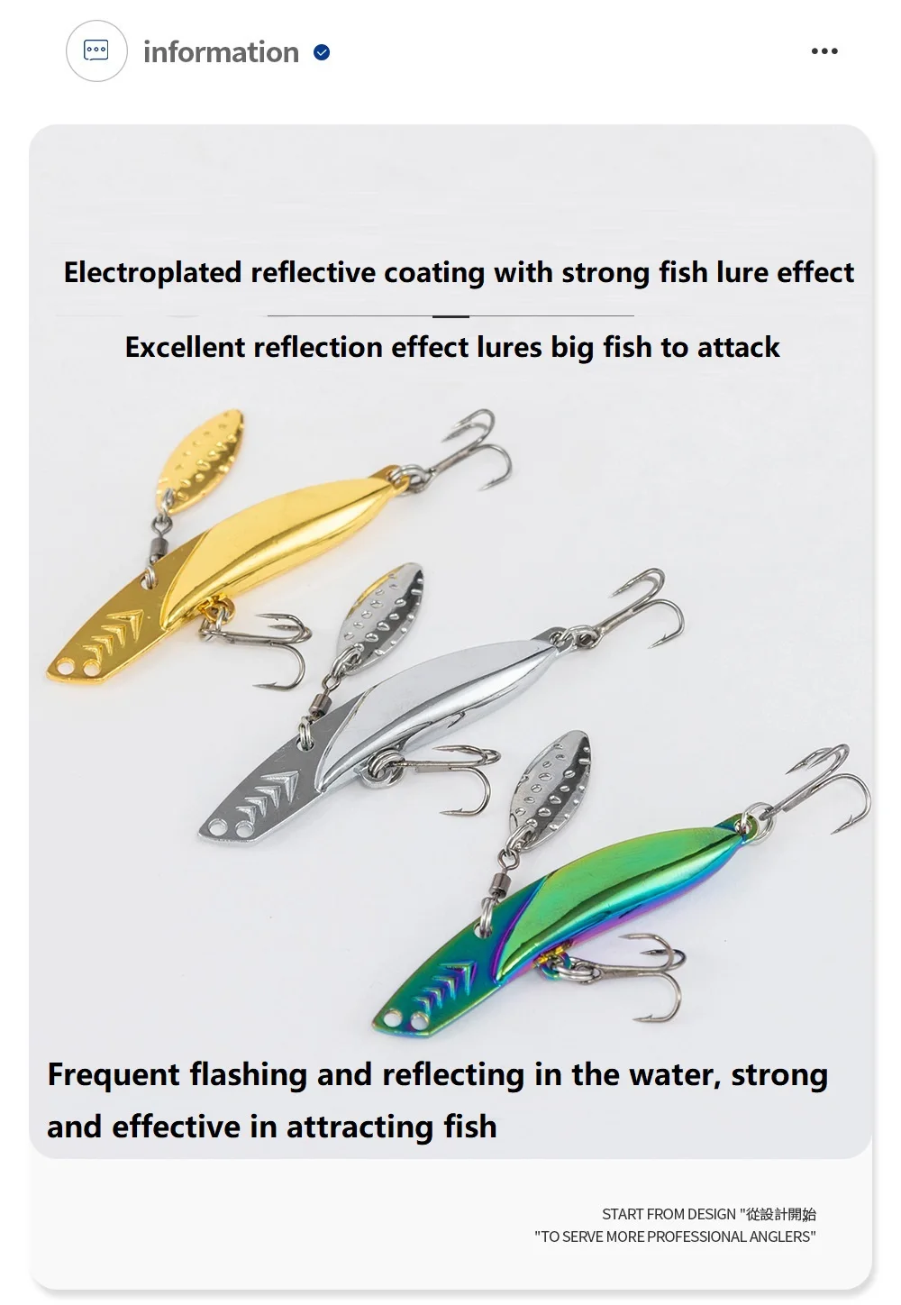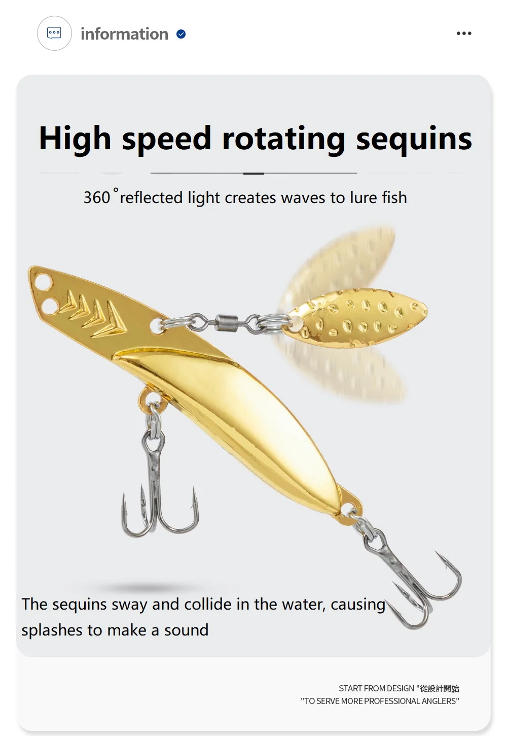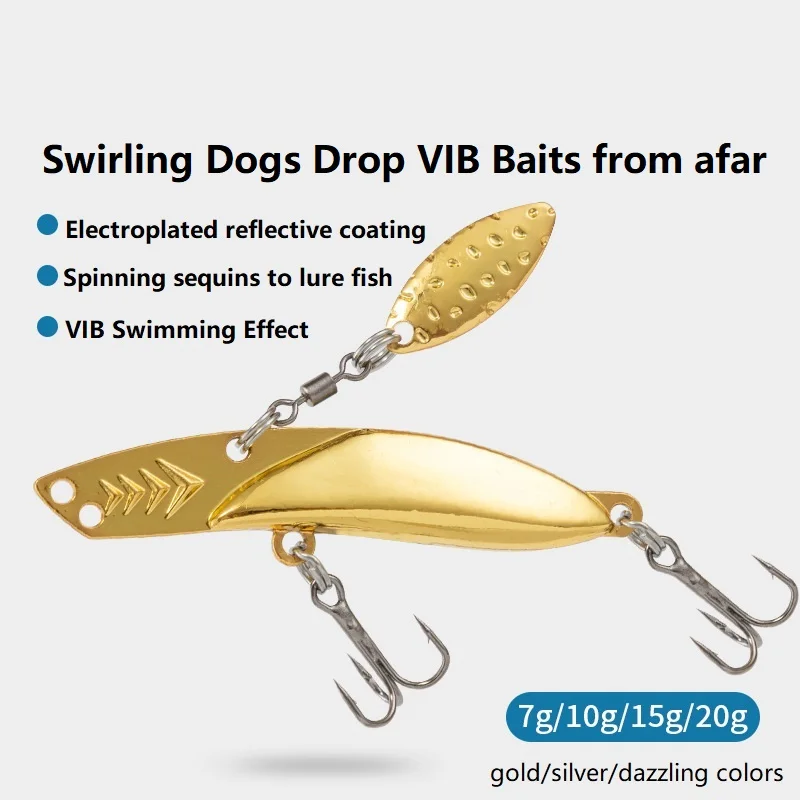 Cebo de perro volador de tiro largo, cuchara giratoria de arrastre, Wobbler, Vib de Metal con ganchos triples con lentejuelas, señuelo de Lucio, 1 piezas