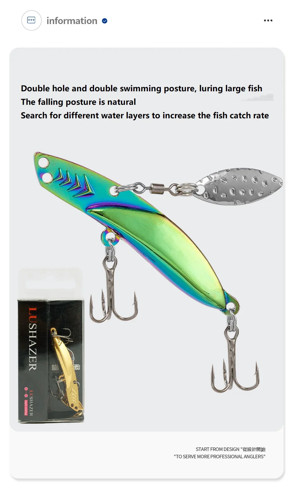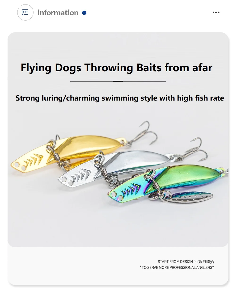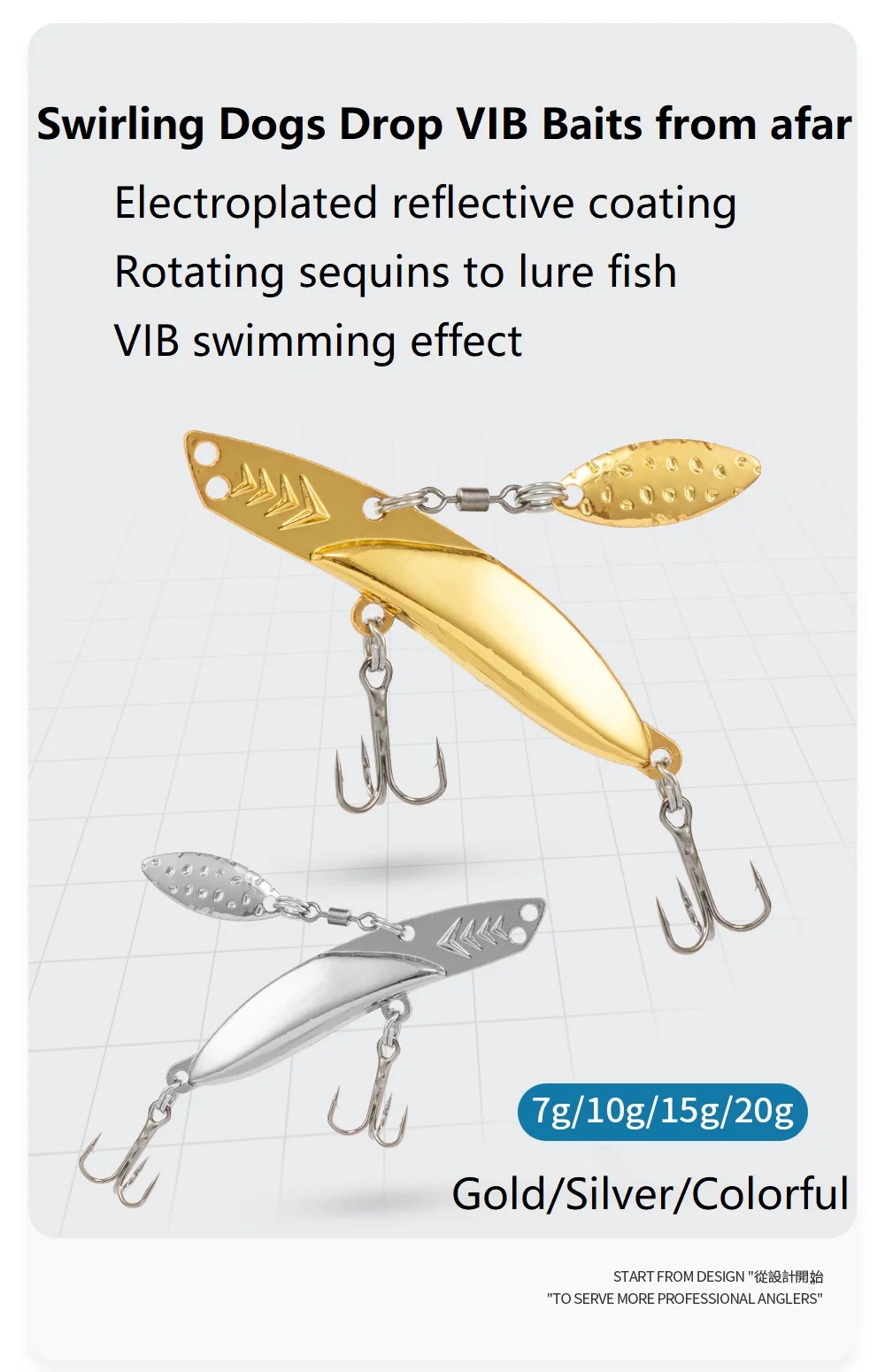 Cebo de perro volador de tiro largo, cuchara giratoria para curricán, Wobbler, Vib de Metal con anzuelos triples con lentejuelas, pesca para señuelo de Lucio