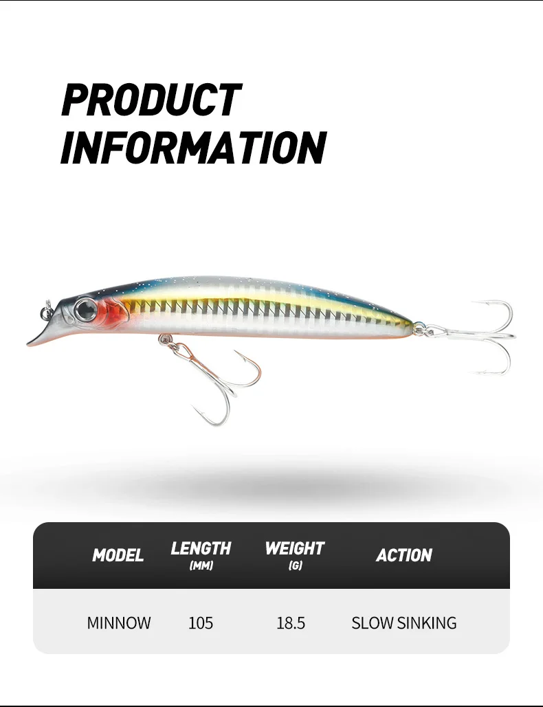 Cebo de pesca 105mm 18,5G señuelo de hundimiento lento señuelo bola de acero dentro Jerkbait Minnow Wobbler Minnow Bass Pike Tackle