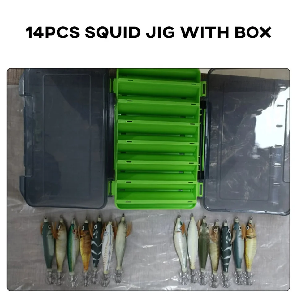 14 unids calamar jig y caja de almacenamiento