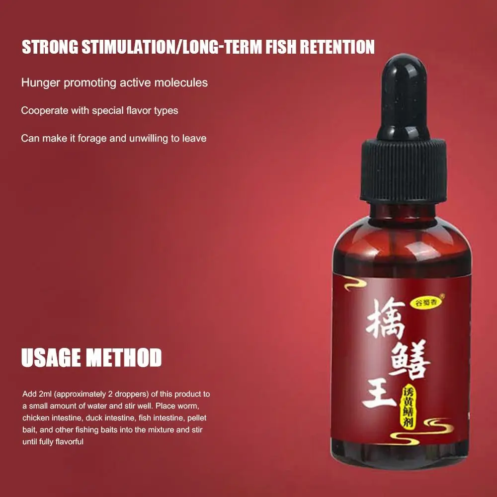 Aditivo de cebo de pesca de camarones y anguilas de 50ml, potenciador de señuelo de pescado Universal para pesca en piscina de mar de lago, suministros de pesca atrayentes Nombre del producto: Aditivo de cebo de pesca Contenido neto: 50ML Vida útil: 12 meses Tipo de sabor: características fuertes a pescado: Este producto está compuesto de atrayentes de alimentos como gusanos rojos, almizcle, miel, Y varios aminoácidos, que tienen una fuerte fragancia a pescado y una fragancia más larga, lo que puede aumentar rápidamente el deseo de forraje del pez y aumentar el efecto de atracción de alimentos, y aumentar la tasa de peces medianos. Lista de productos: 1 * aditivo de cebo