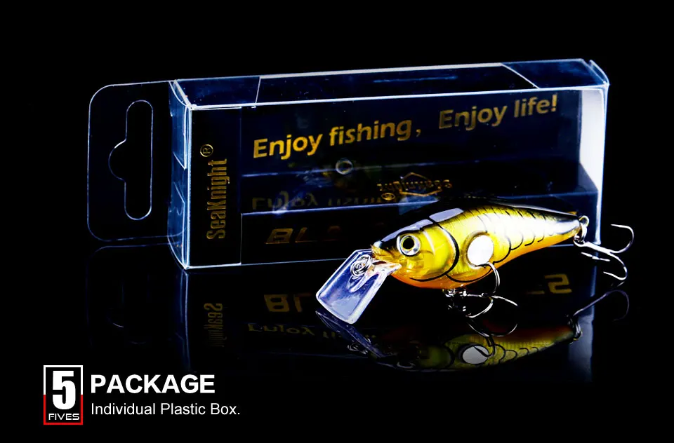 Características:1. Ojos de pez 3D: ojos grandes y brillantes.2. Bolas de metal: Bolas de acero inoxidable en el interior, para mantener el equilibrio del señuelo de pesca, para la fundición a mayor distancia, cuando se lanza el cebo, estará sin sonido, disfrute plenamente del placer de la pesca.3. Ganchos: equipados con ganchos anticorrosión, potencia más fuerte, duradero, tres ganchos.4. De pez Lengua: lengua corta para el control de la postura de natación, más realista.5. Cola de simulación: pista de equilibrio.5. Vocalización de fuerza magnética: Deja que el pez lo encuentre más fácilmente.6. Anillos bicíclicos más fuertes: bicíclicos más robustos.7. Simulación de ictiosis (láser): el diseño del láser de simulación de ictiosis lo hace más atractivo para los peces grandes.Detalles del productoMarca: SeaKnightModelo de señuelo: Crankbait SK003Tipo de señuelo: señuelo de pesca duroPeso del señuelo: 10g/0,35 ozLongitud del señuelo: 55mm / 2.16inProfundidad de buceo: 1,8-3,9 M/5,91-12,79 piesFlotabilidad: señuelo flotante Ganchos: Equipado con 2 antis. Ganchos Corrosivos