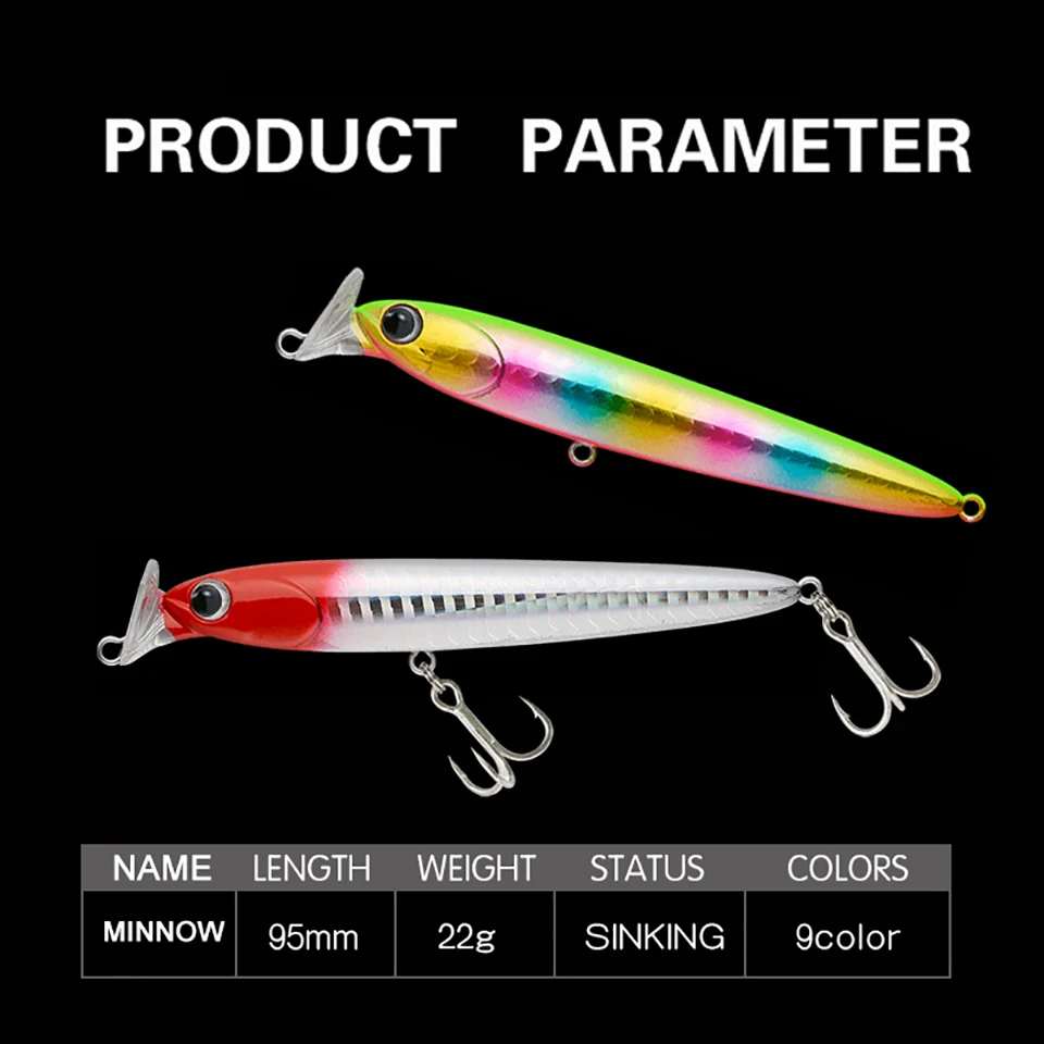 Cebo de Pesca Artificial con Ojos 3D, Cebo Duro para Agua Salada, Wobblers, 95mm, 22G, 1 Unidad
