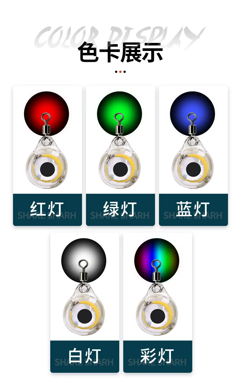 Cebo de pesca de calamar subacuático led, forma de ojo de luz de pez, lámpara de pez luminosa, señuelo de gota profunda, colorido, electrónico
