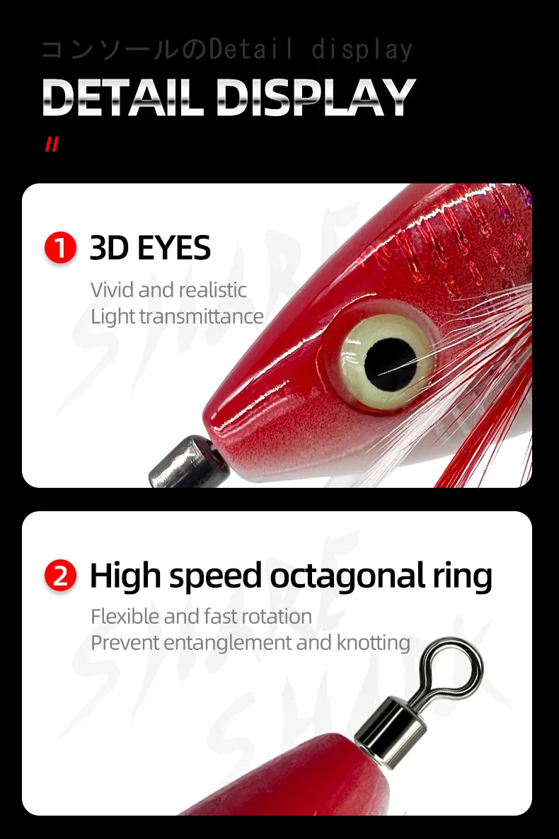 【Portabilidad conveniente】:Diseñado para facilitar su transporte, este cebo de pesca de pulpo y sepia es liviano y portátil, lo que permite a los entusiastas de la pesca llevarlo consigo dondequiera que vayan.Viene con una práctica cubierta de gancho para guardar ordenadamente el gancho en una caja de aparejos o mochila, protegiéndolo de lesiones accidentales.