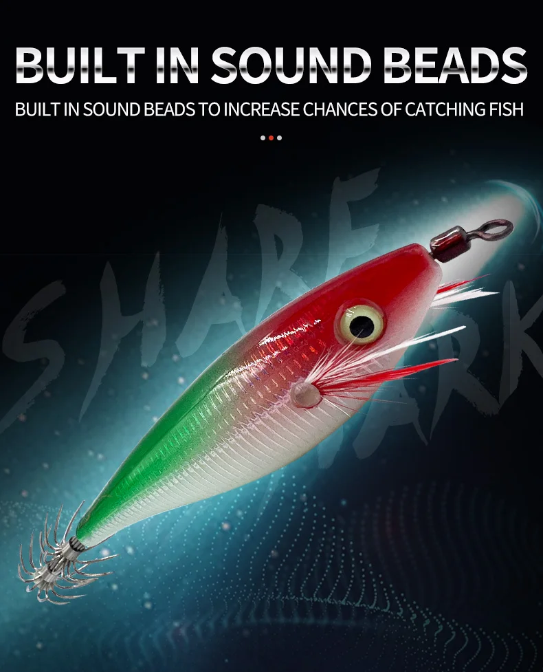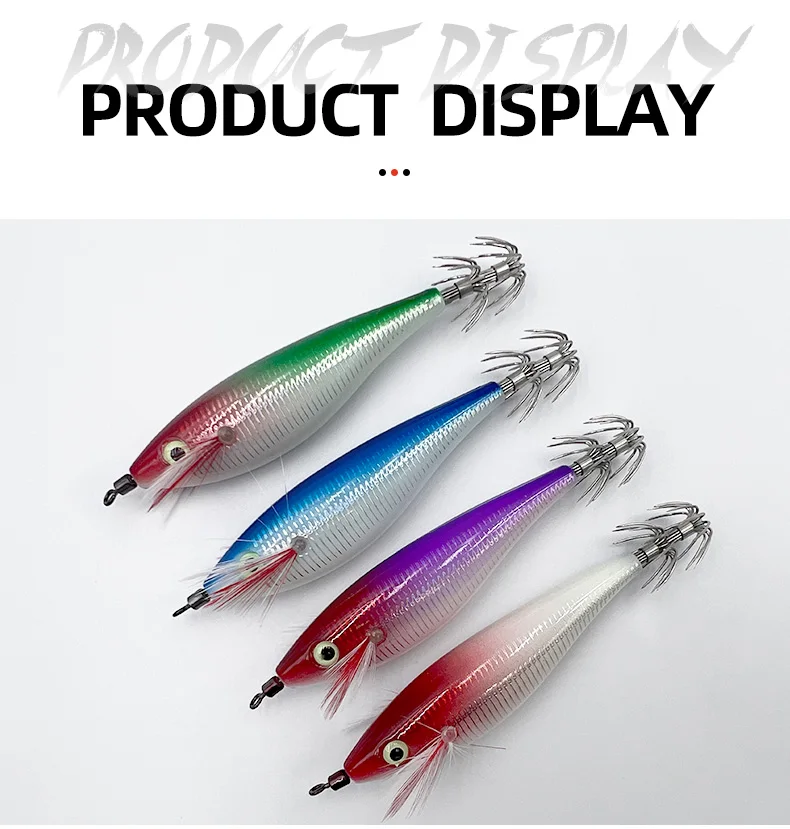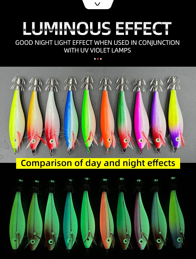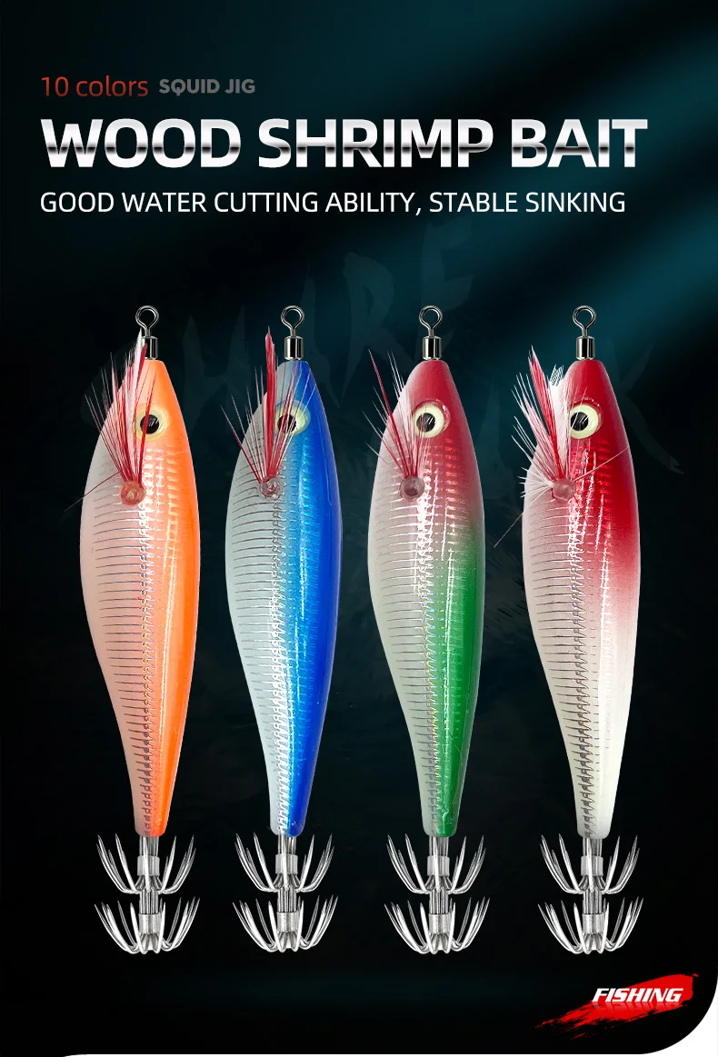 Cebo luminoso de madera para camarones, aparejos de pesca, simulación de anzuelo de calamar que brilla en la oscuridad, anzuelos de plantilla de calamar, señuelos de pesca【Aplicación versátil】:Adecuado para diversos escenarios de pesca, este anzuelo para gambas brillante se puede utilizar tanto en agua dulce como en agua salada.Su alta visibilidad y su atractivo brillo lo convierten en una excelente opción para apuntar a una amplia gama de especies de peces, mejorando su tasa de éxito en la pesca.