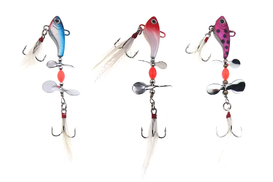 Cebo de pesca giratorio, 1 piezas, 13,5g, señuelo de cuchara, cebos de Metal, anzuelo triple de plumas, cebo Artificial, aparejos de pesca, Spinnerbait