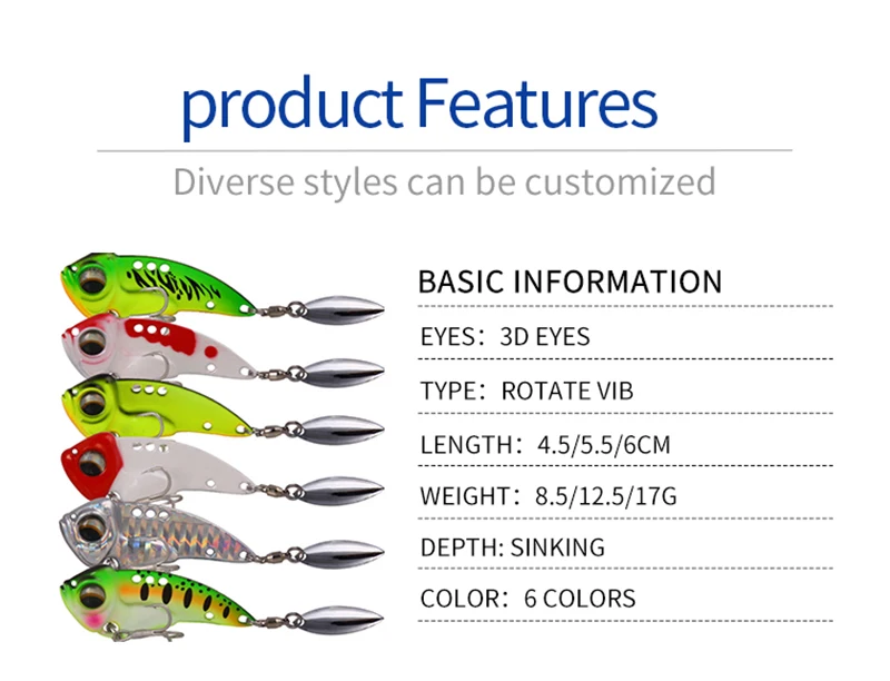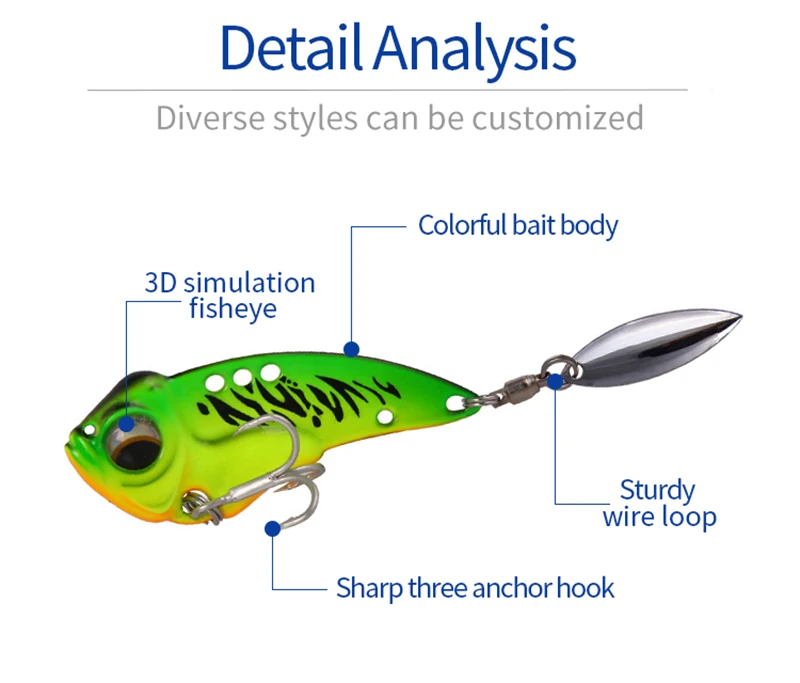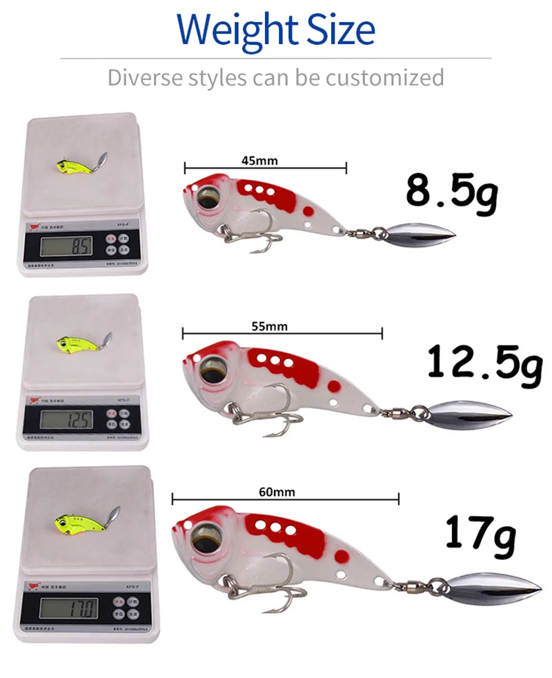 Cebo de Pesca Giratorio, Cebo de Metal con Vibración VIB, Cuchara de Lentejuelas, Señuelo de Hundimiento, 1 piezas
