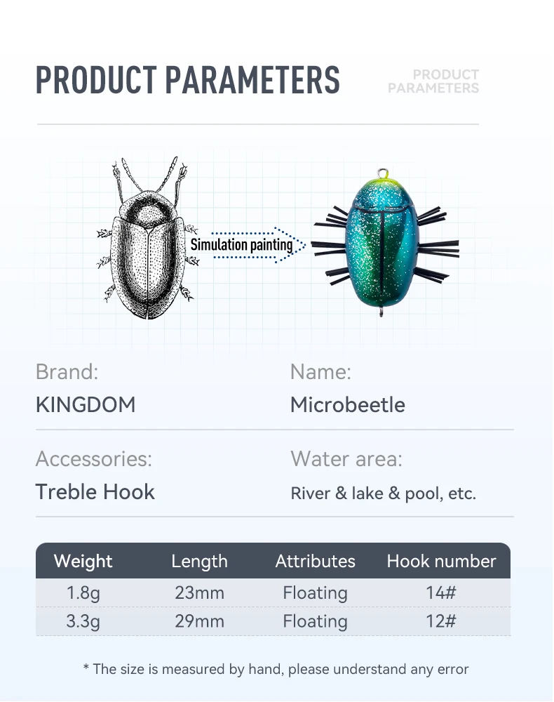 • Diseño realista de insectos:El Kingdom Insect Fishing Bait imita la apariencia de los insectos reales, por lo que es una opción atractiva para los peces que se alimentan de insectos.