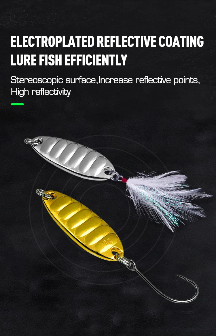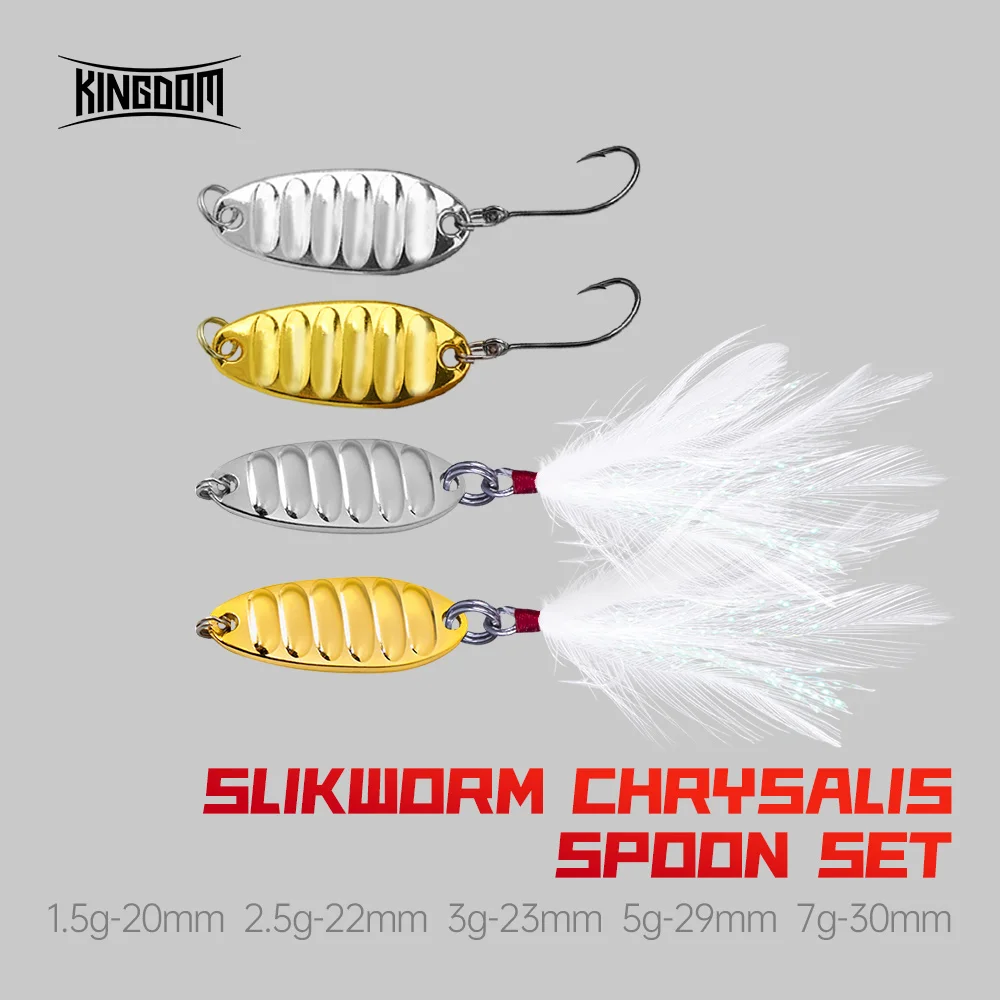 Cebo de pesca KINGDOM, 1,5g, 2,5g, 3,5g, 5g, 7g, señuelo cuchara de Metal, revestimiento reflectante para trucha, lubina, cuchara giratoria de lentejuelas duras pequeñas