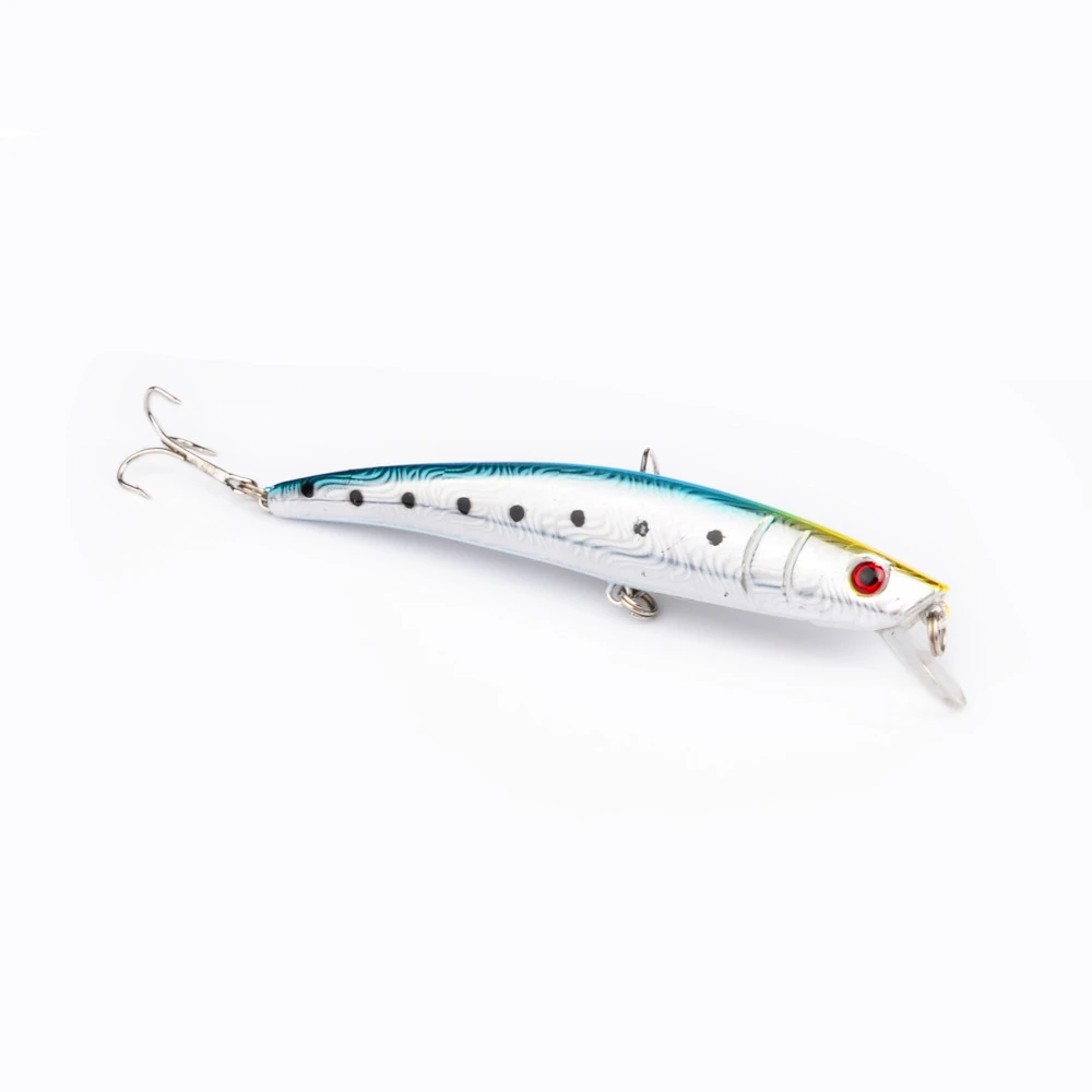 Parámetros del producto: Color: 10 Peso: 10,2g Longitud: 11,5 cm Tamaño del gancho: n. ° 4 Profundidad de buceo: 0,6-1,8 m 1. Puede reflejar la luz externa desde todos los ángulos y tiene el efecto de atraer peces con luz. Adecuado para diferentes regimenes de agua. 2. Está hecho de material plástico ABS. Es firme y fuerte, y resistente a caídas y golpes. La bola de acero utilizada en el interior ha sido probada por instrumentos de precisión para garantizar la postura de natación de cada cebo.