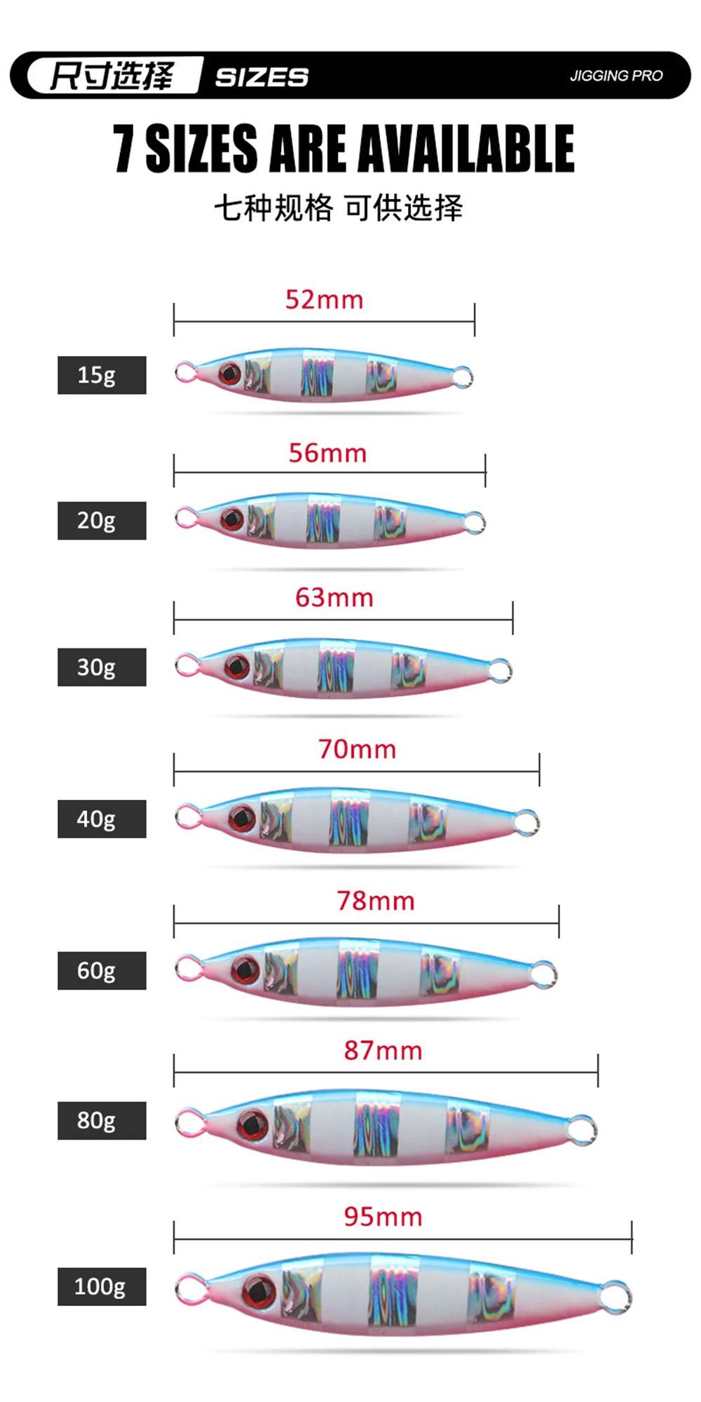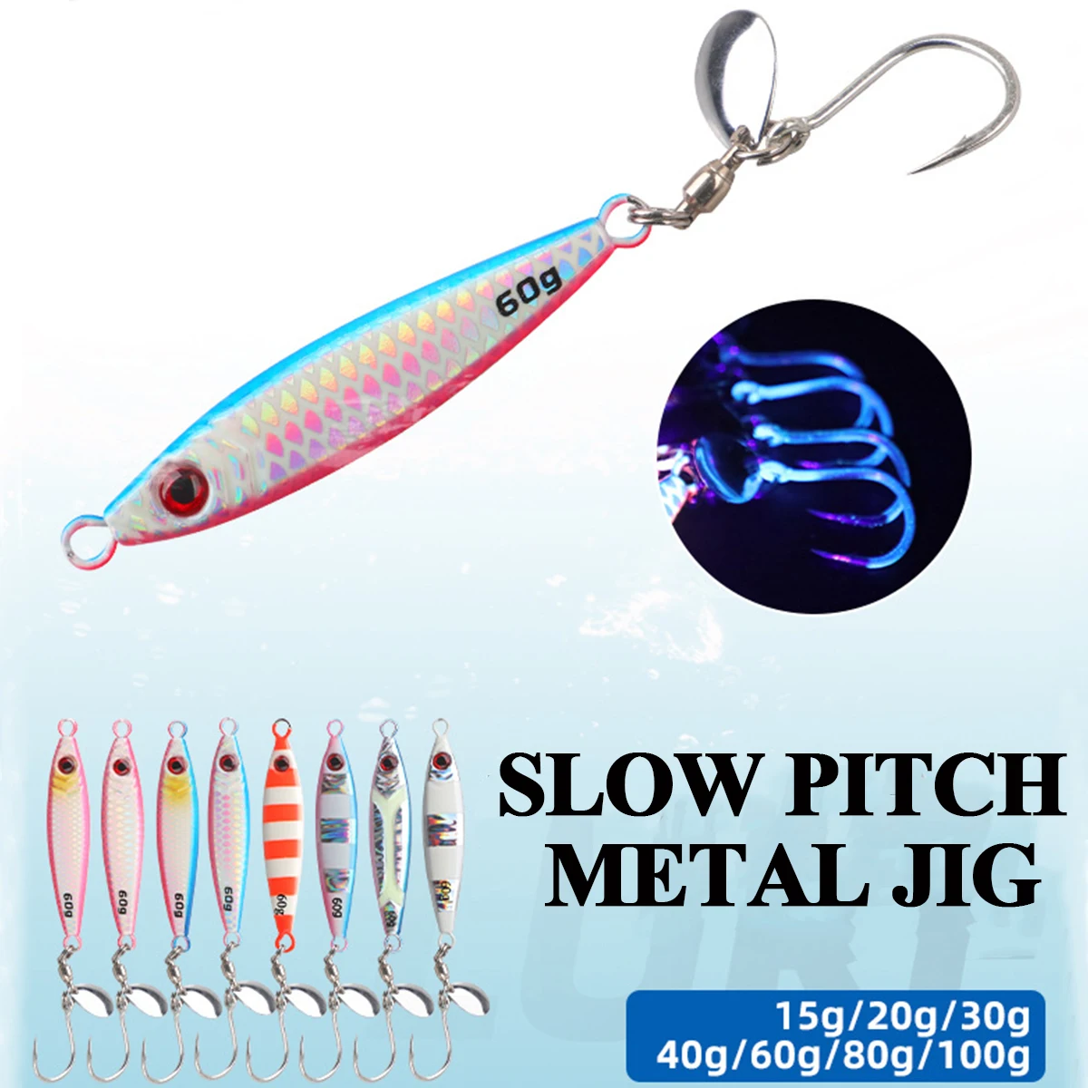 Señuelos de Jigging de Metal lento 40g 60g 80g 100g cebo de pesca luminoso Jig Fish pesca en alta mar atún caballa Wahoo señuelo de agua salada