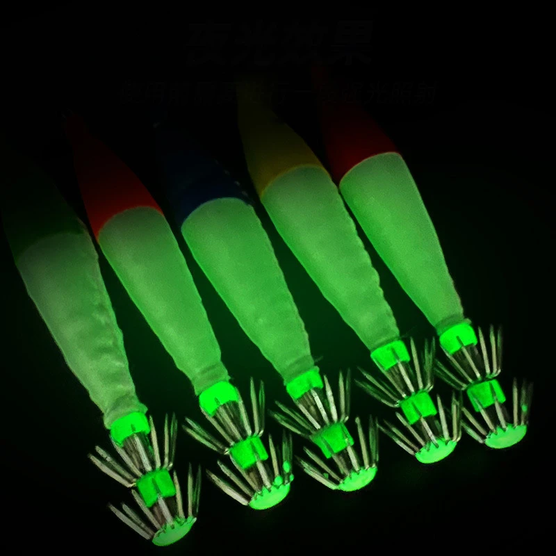 * cebo de pesca de 6g/9cm, anzuelo luminoso de madera para calamar y camarones, anzuelo falso para peces