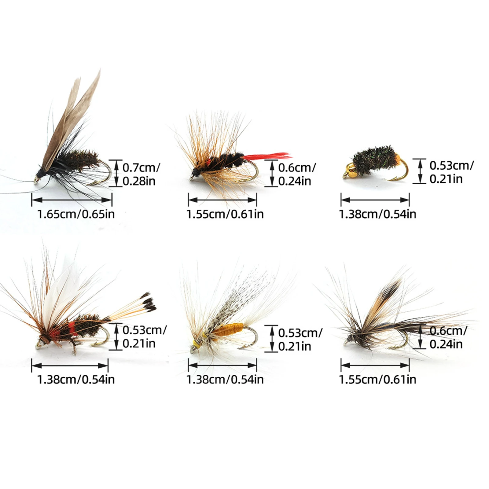 Moscas húmedas para trucha: nuestros señuelos de pesca con mosca de 6 piezas cuentan con moscas húmedas realistas diseñadas específicamente para trucha, lo que garantiza presentaciones efectivas y atractivas que atraen a los peces en diversas condiciones del agua.