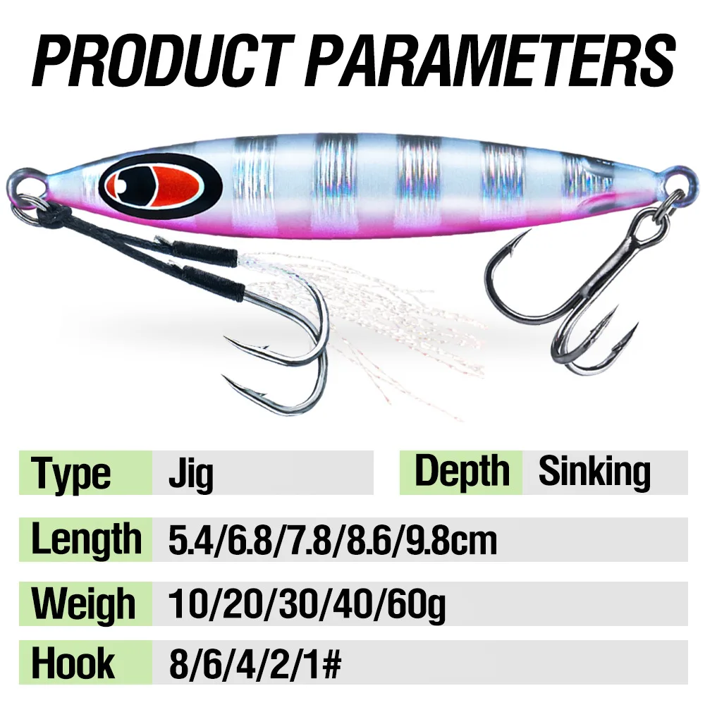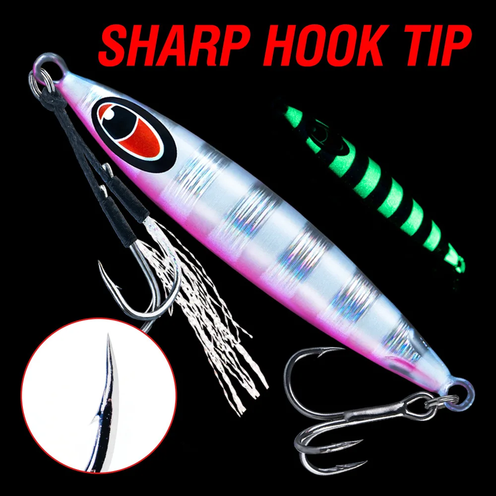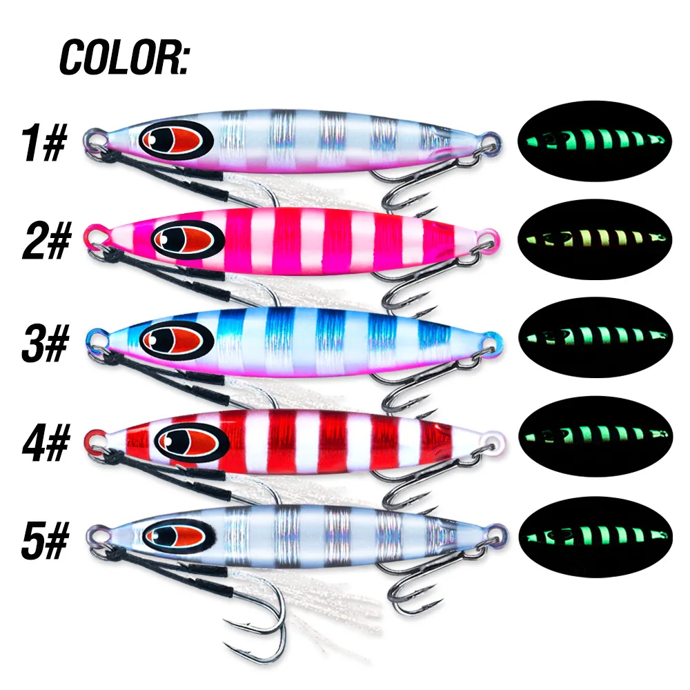 Cebo de pesca con plantilla luminosa, 10g-60g, señuelos de Jigging, cebo duro Artificial, señuelo de fundición de Metal con anzuelo afilado Wobbler para pesca de lubina