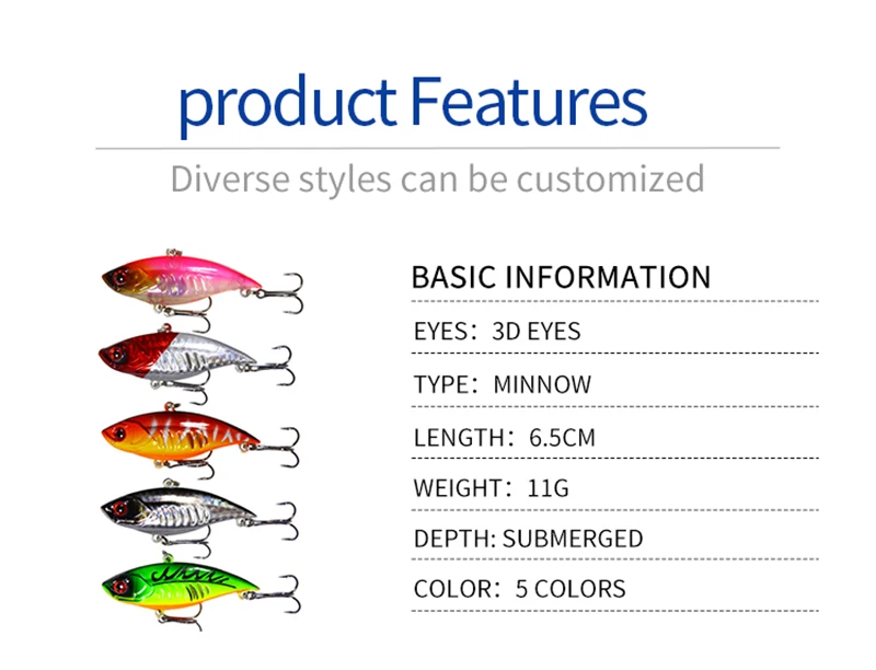 Hundimiento VIB Cebo de pesca de plástico 6,5 cm/11g Woblers Cuchara Pike Minnow Crankbait