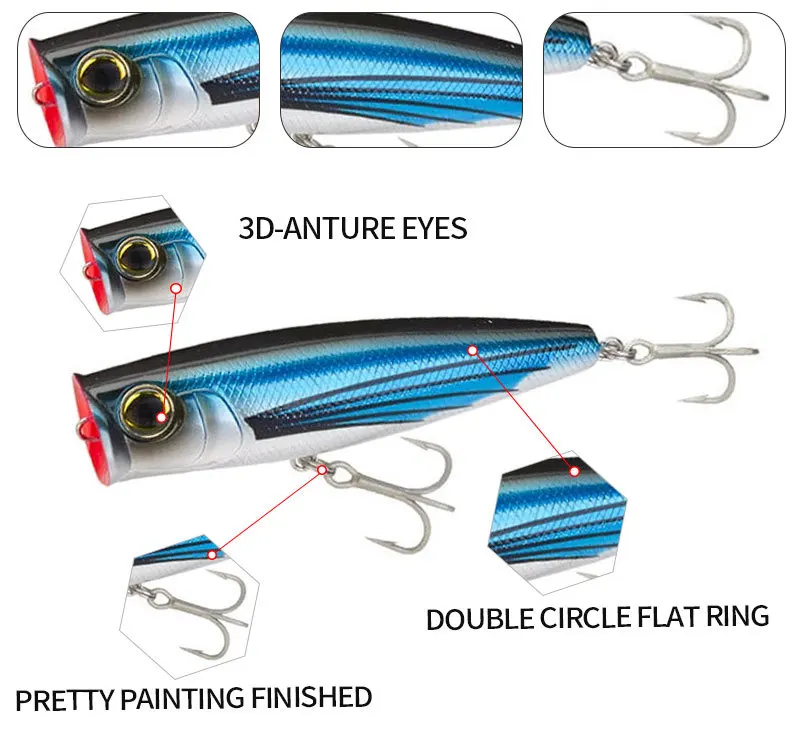 Cebo de pesca Popper, dos anzuelos fuertes, señuelo popper grande de 150mm/58g, cebo duro, cebo para peces, lubina de largo alcance, boca doblada