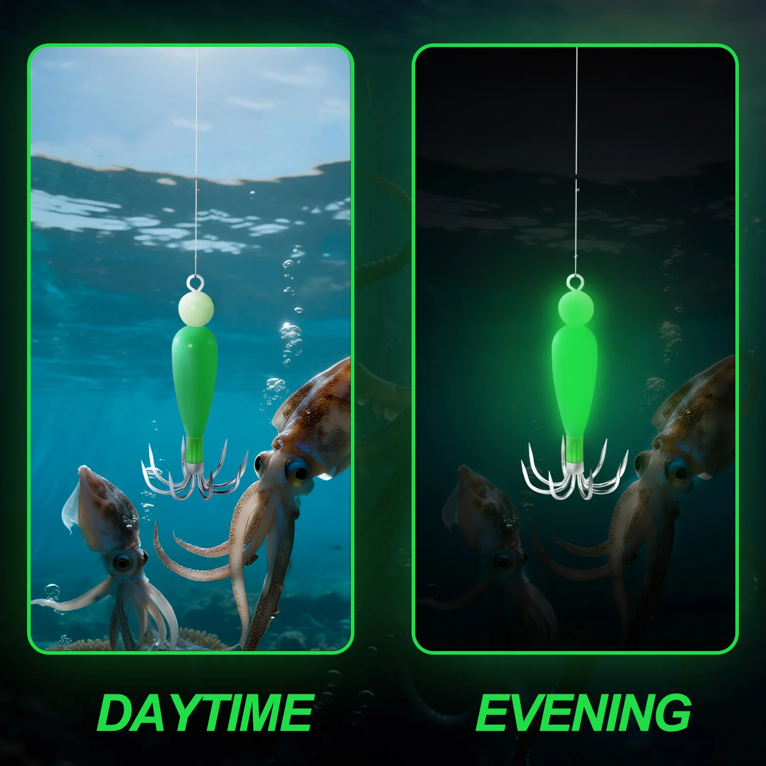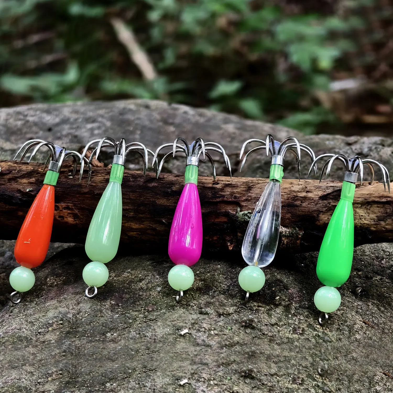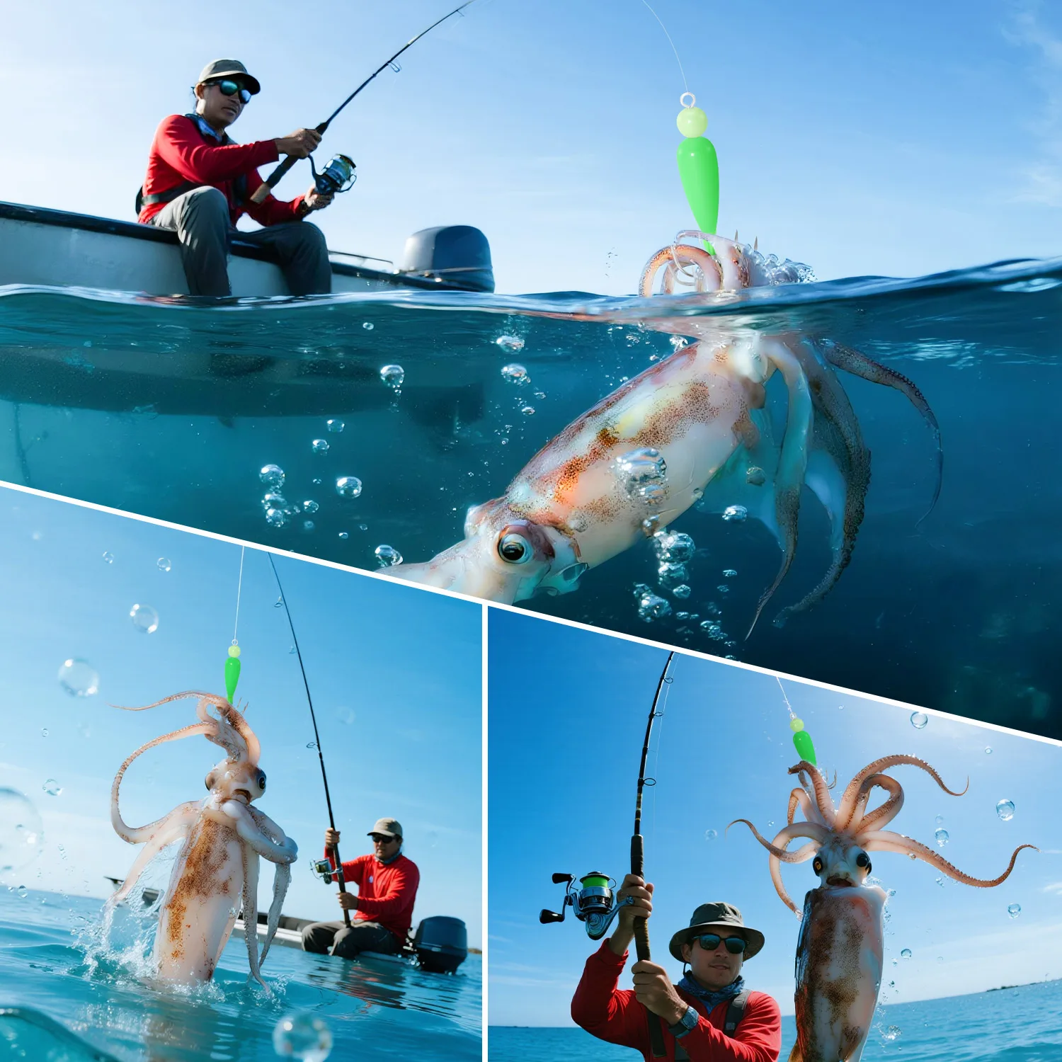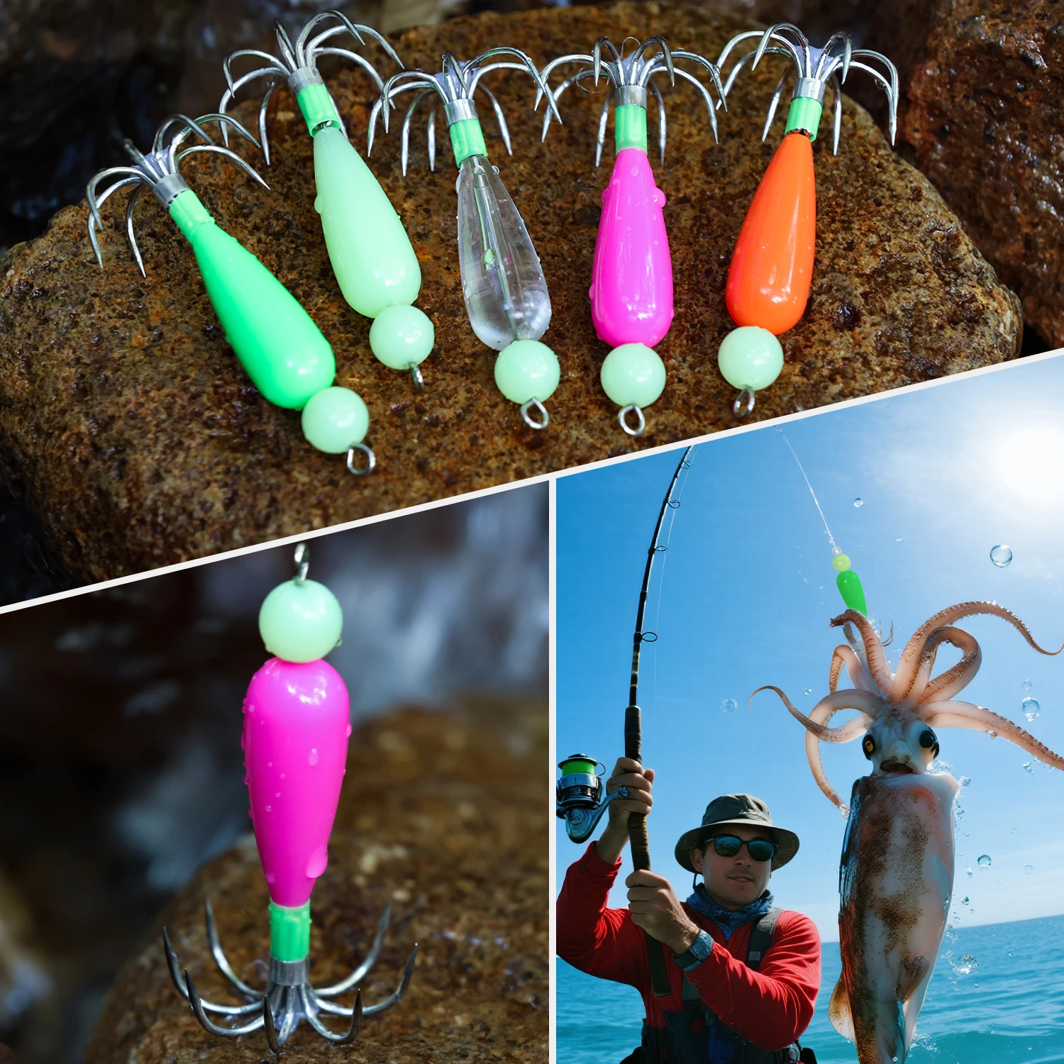 Ideal para la pesca en barco oceánico, este accesorio de señuelo imita calamares reales, atrayendo una variedad de criaturas marinas.