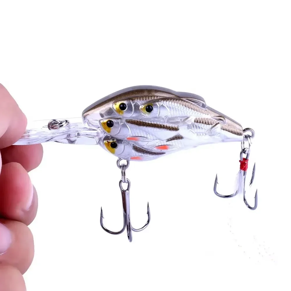 Cebo de pescado simulado con gancho de plumas para pesca en el mar de agua dulce, cebo duro Artificial flotante Mino, cebo de pesca en el mar de 7,5cm y 9g