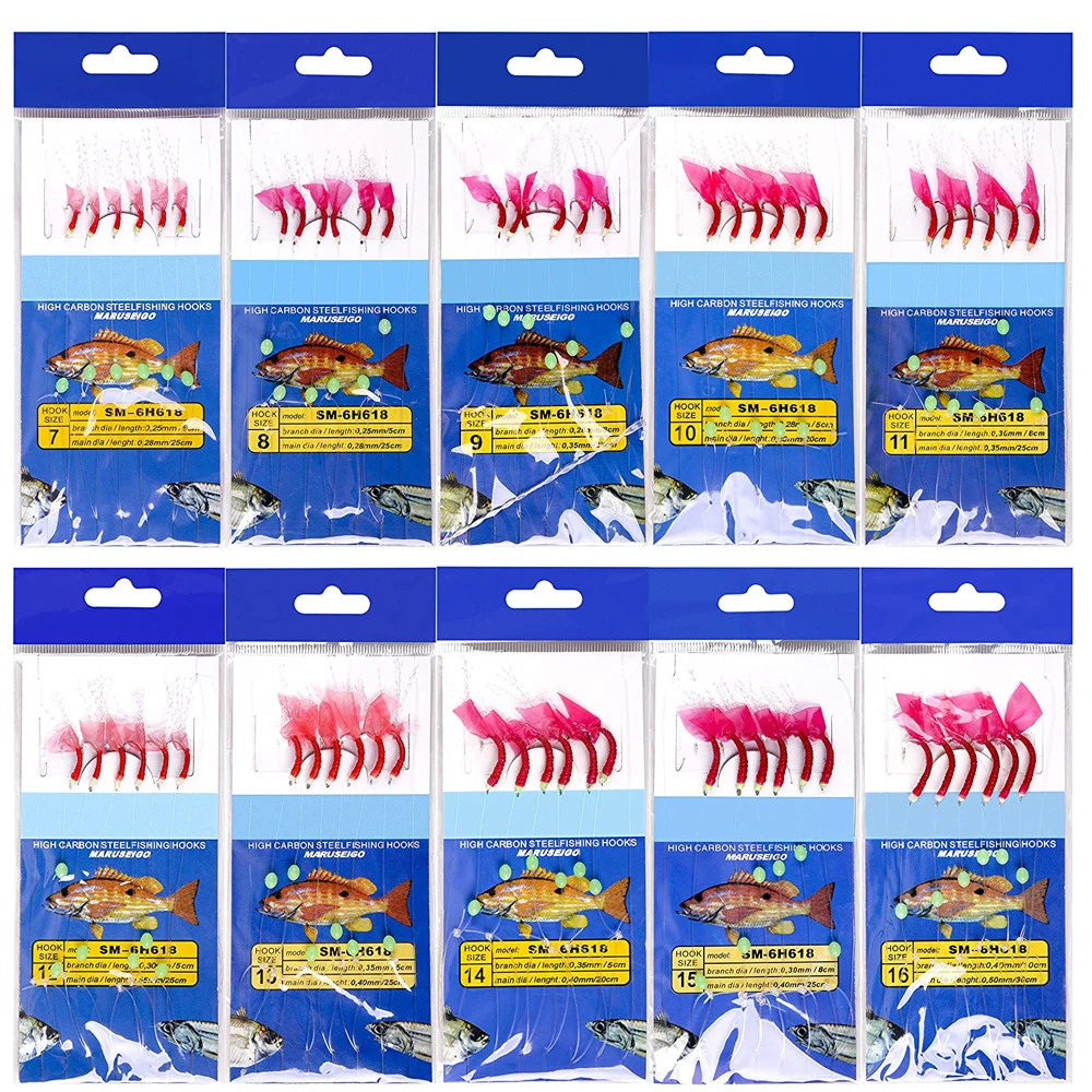 Easy Catch 10 Uds cebo de piel de pescado rojo aparejos de agua salada 6 ganchos de brazo aparejos intermitentes de pesca de mar con aparejos de cebo a presión giratorios para arenque