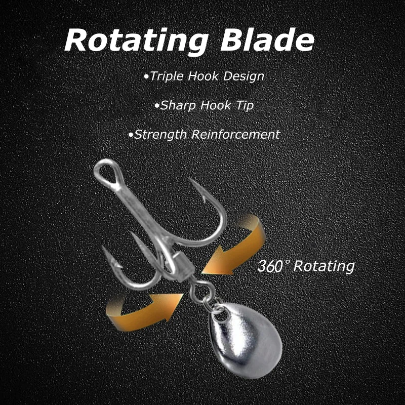 4.Anzuelos triples afilados: equipados con fuertes anzuelos triples diseñados para enganchar y retener peces de forma segura una vez que muerden.