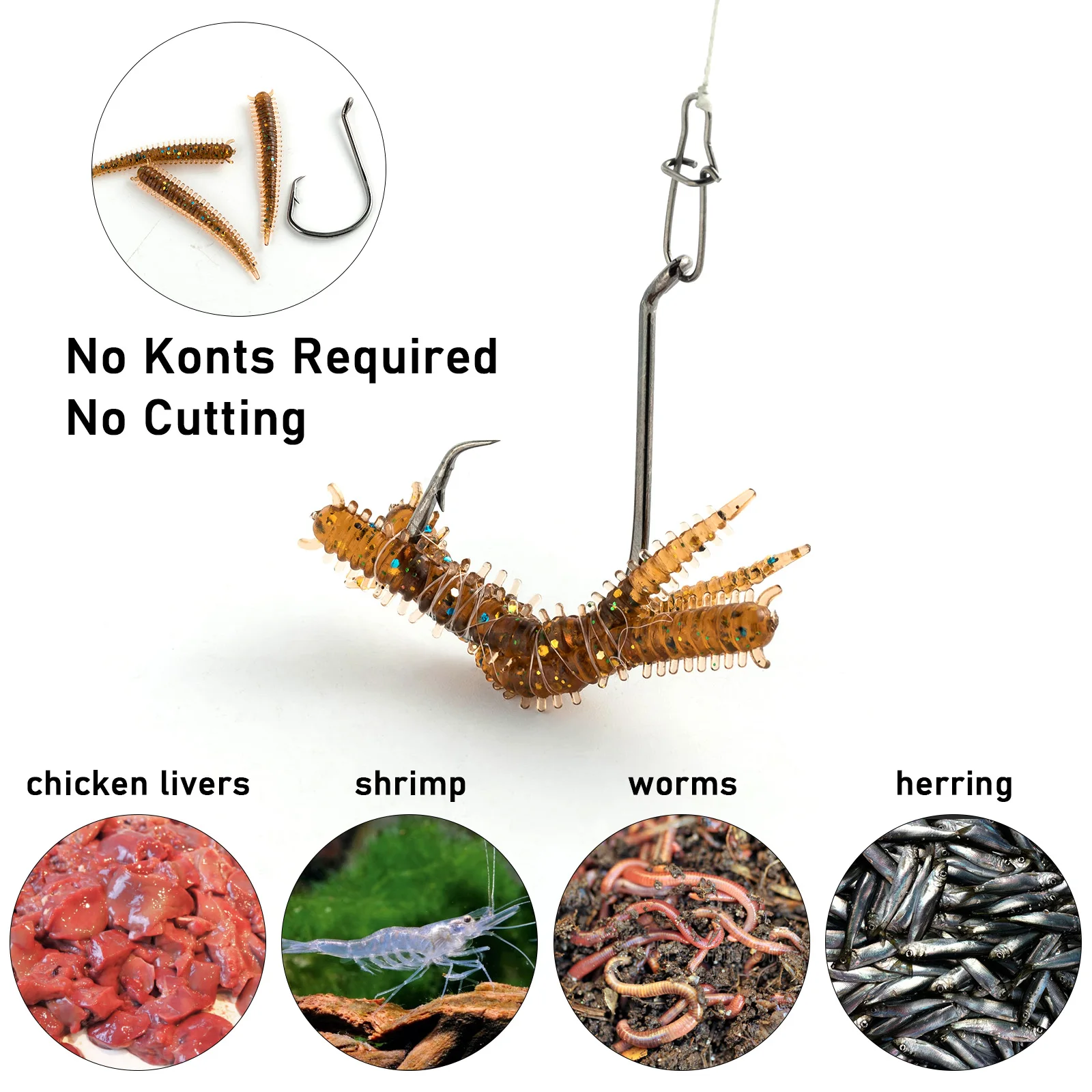 5 carretes elásticos de resistencia media para unir cebos muertos (camarones, calamares, cangrejos, peces, etc.) a su anzuelo es una técnica de cebo relativamente barata, simple pero efectiva, que hacen que el cebo sea más seguro en el anzuelo y proporcionan una mejor presentación del cebo.