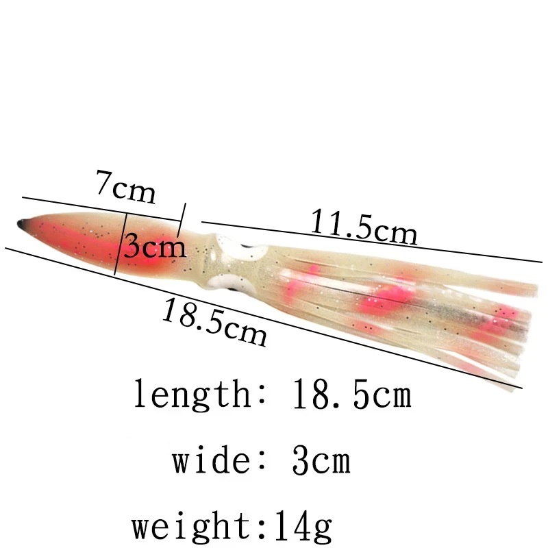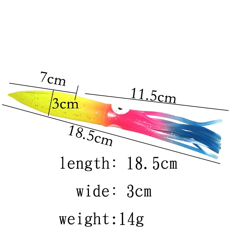 Cebo suave Artificial de goma de PVC, cebo suave de pulpo, faldas de calamar, señuelo de pesca suave, señuelo de pesca para curricán, 1 unidad, 18cm, 14g