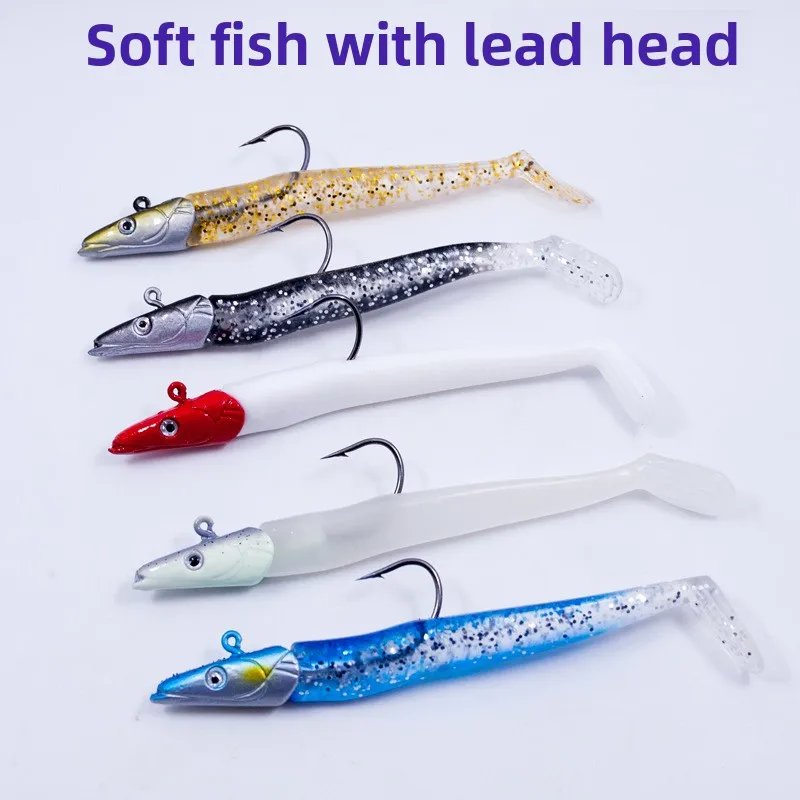 Cebo suave con cabeza de plomo Testar, 5 colores, señuelo brillante de hundimiento lento para pargo de bacalao de lubina, cebo de Jigging de agua dulce y salada