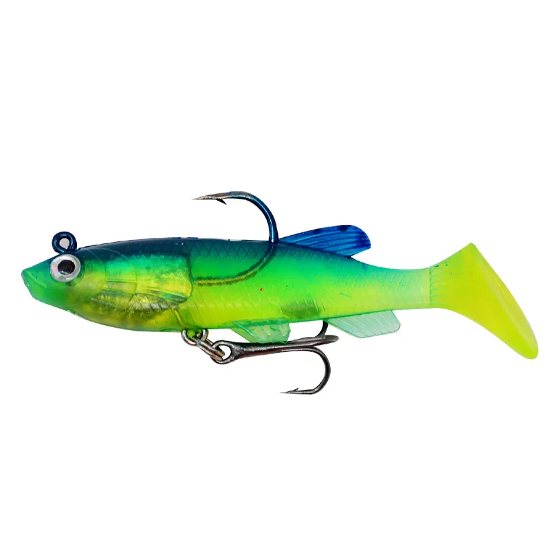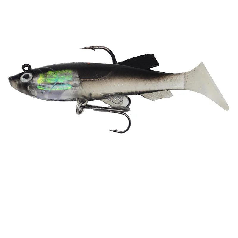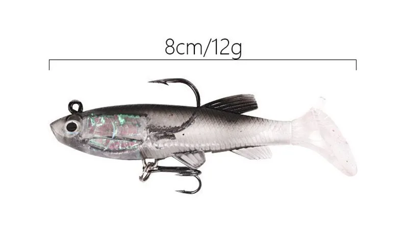 Cebo suave con cola en T, cabeza de anzuelo, pez, 8cm, 12g, Señuelos de pesca, lubina, señuelo Artificial, lote de 10 piezas en oferta