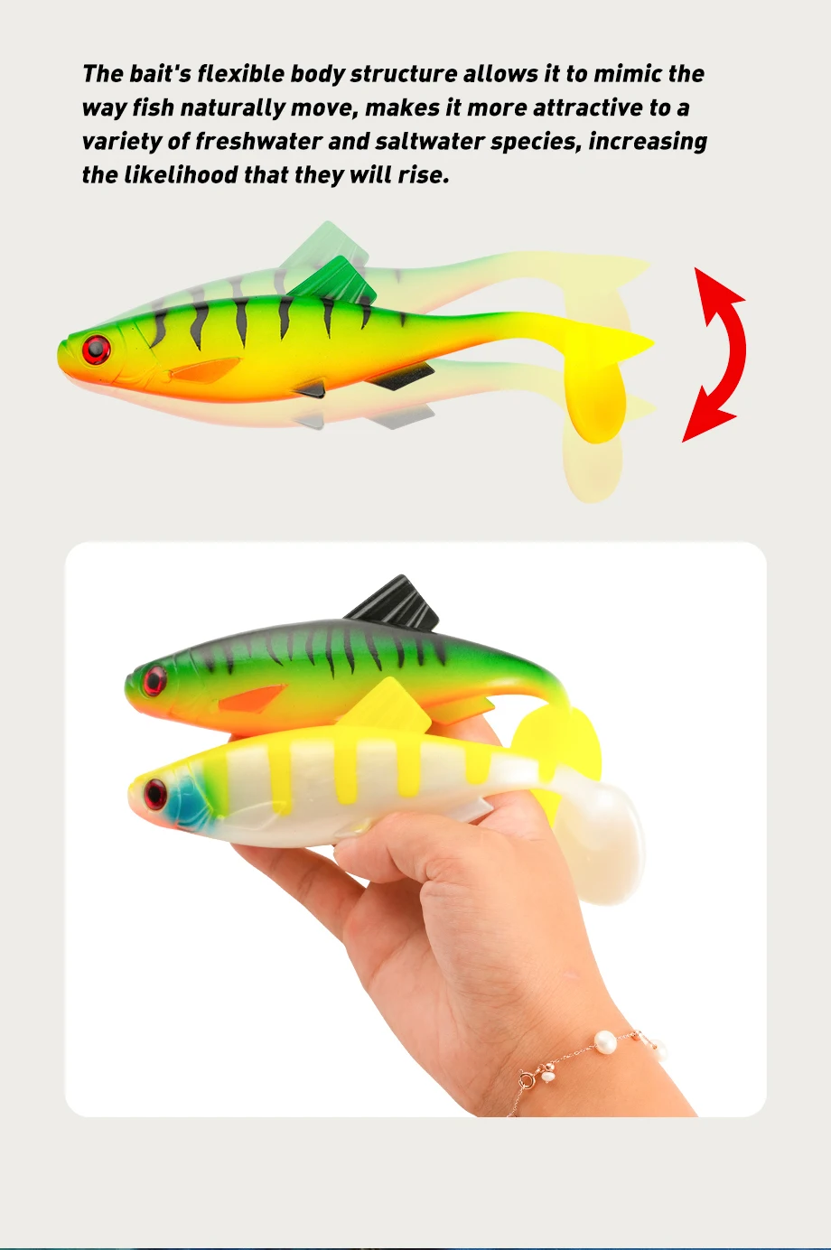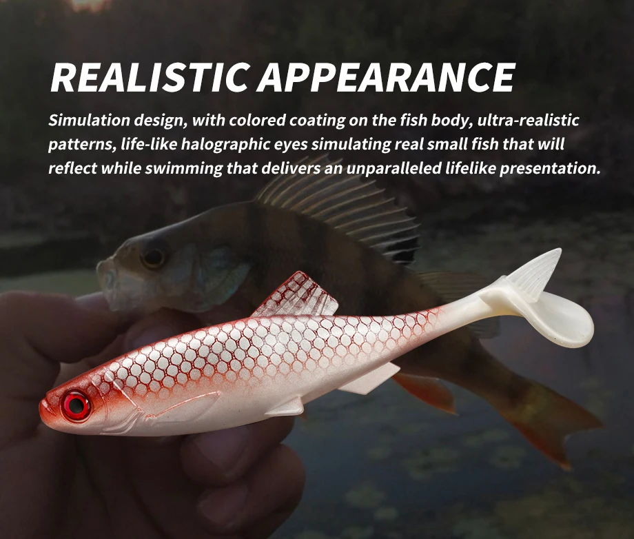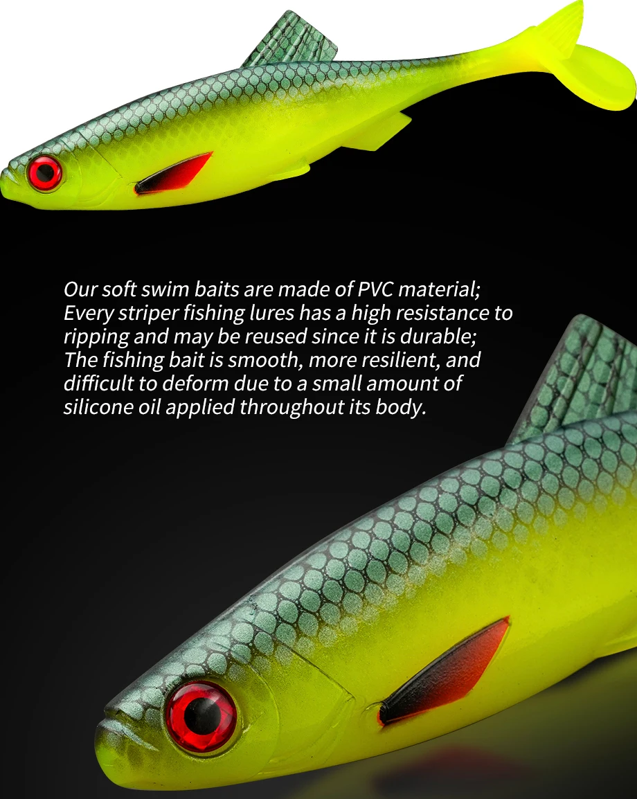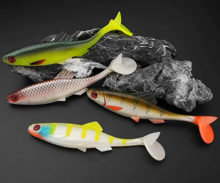 Buen pescado, se mueve bien en el agua. Solo huele un poco fuerte al principio, como a lubricantes o algo similar. Pero puedes lavarlos y usar un spray de fragancia (pescado, cangrejo, mariscos...).
