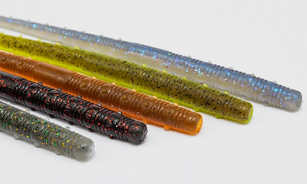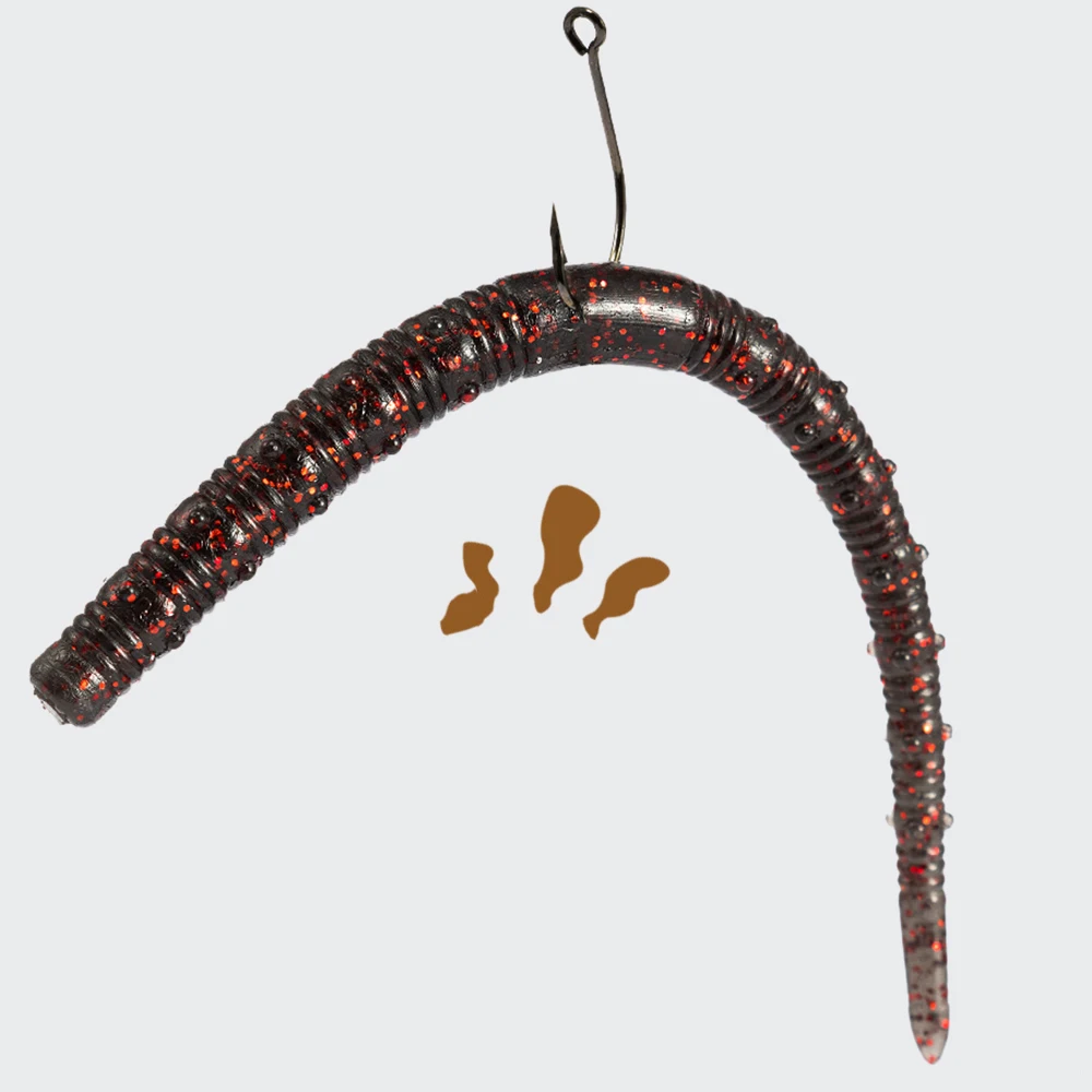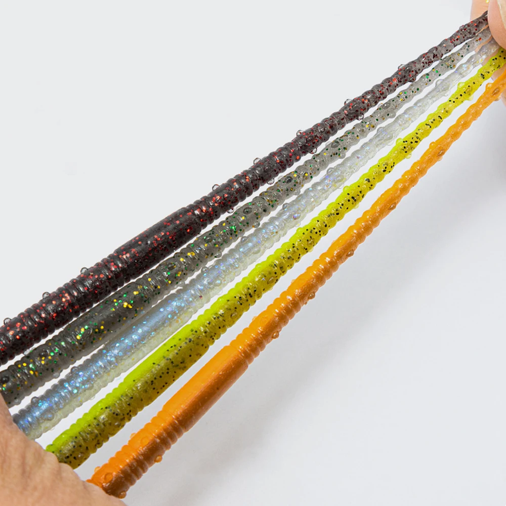 Los señuelos de plástico para gusanos están infundidos con brillos coloridos, que reflejan la luz desde todas las direcciones para atraer mejor a los peces, lo que reduce el estado de alerta de los peces.