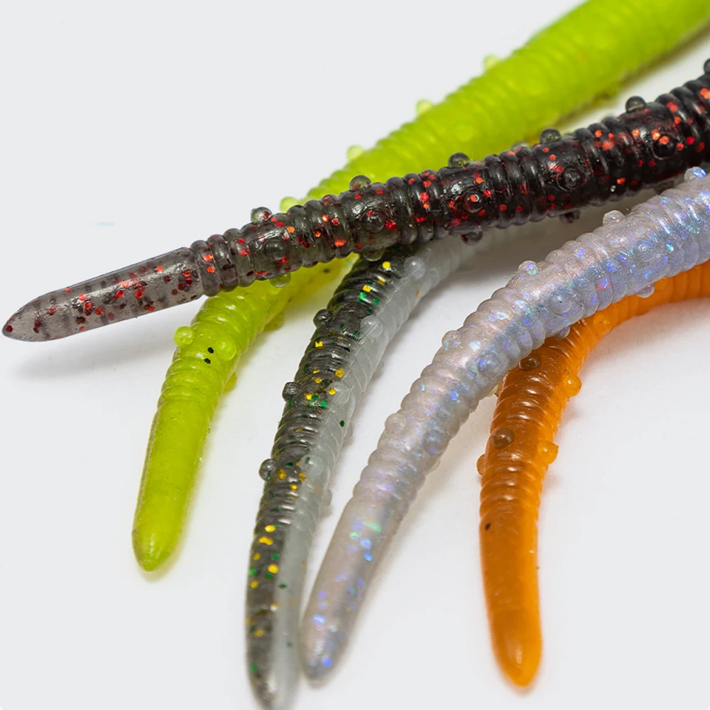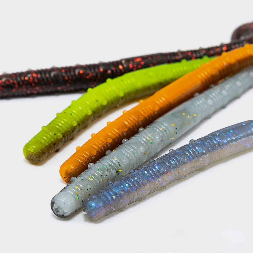 Señuelos blandos de gusano: el diseño en forma de gusano y el diseño de longitud pueden atraer rápidamente una variedad de peces, especialmente lubina, ya que estos son gusanos de goma esenciales para la pesca del lubina.