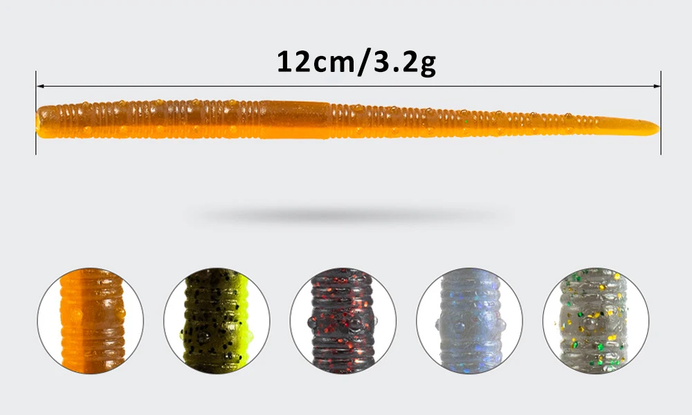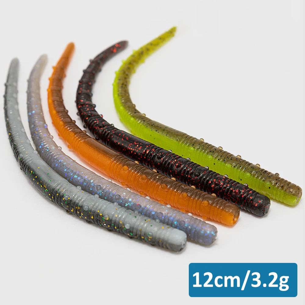 Cebo suave de gusano de 12cm, cebo para pesca, señuelos blandos para lubina, agua dulce, pesca de agua salada, aparejo Wacky Carolina, aparejo Texas