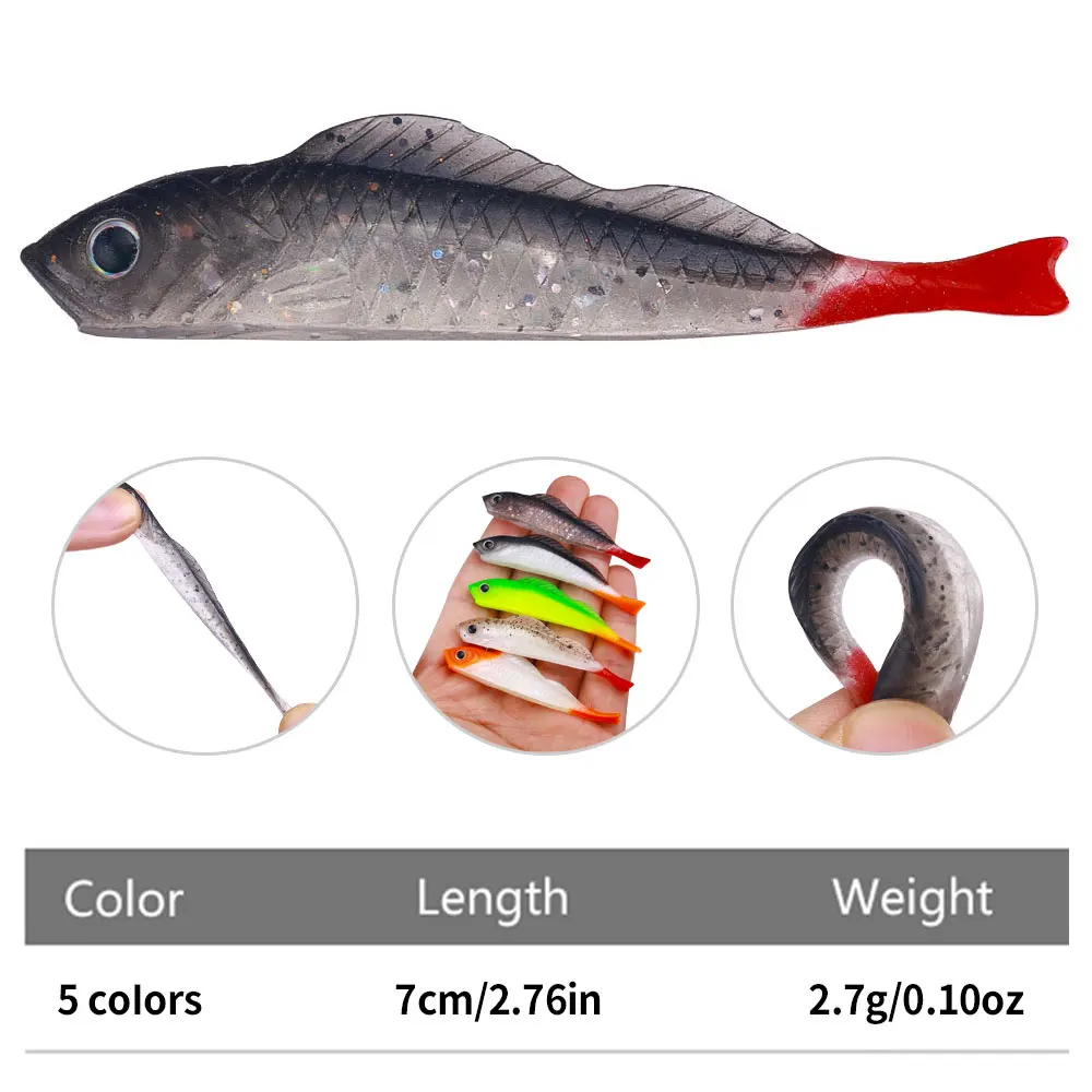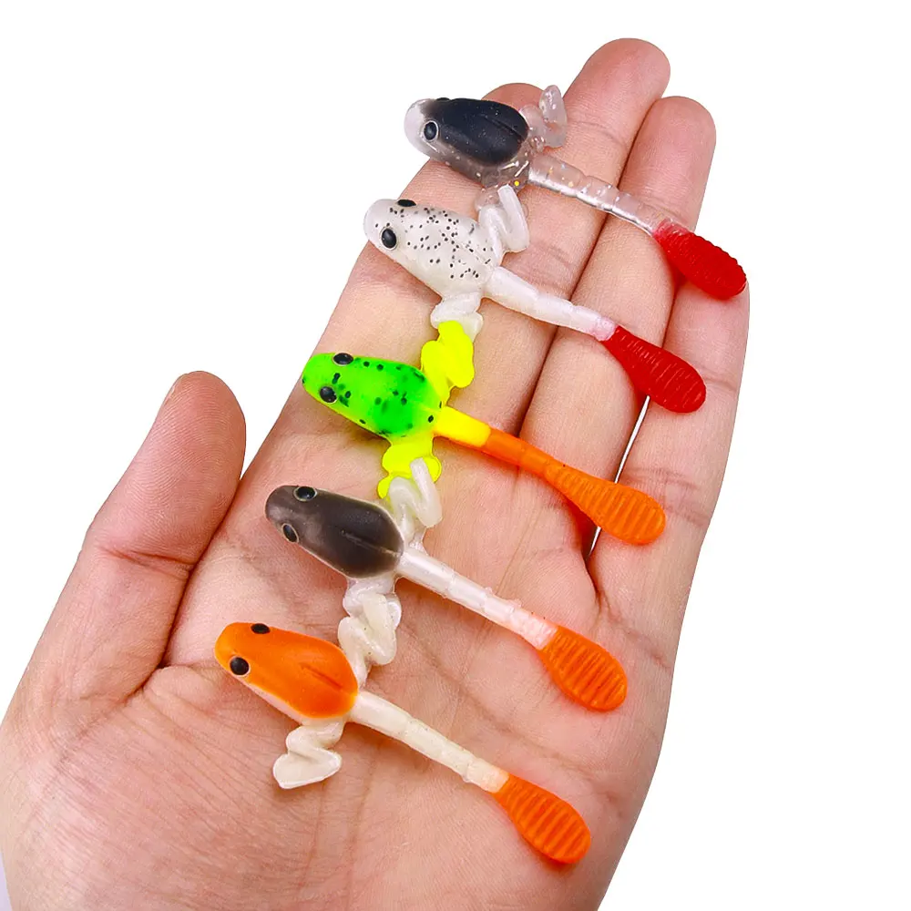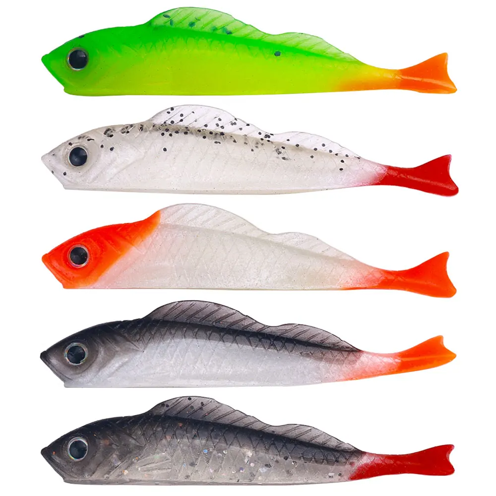 Cebo suave de silicona para pesca, señuelo biónico de cola plana, de goma giratoria, para salamandra, 5 unids/lote por bolsa