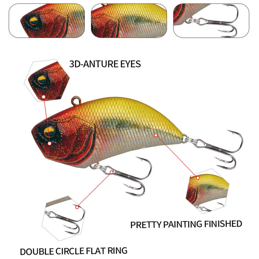 Cebo de vibración sin labios, 54mm/15g, señuelos Vib de nivel realista, pesca que se hunde, Crankbait de ratán de plástico duro, Señuelos de pesca en hielo para invierno
