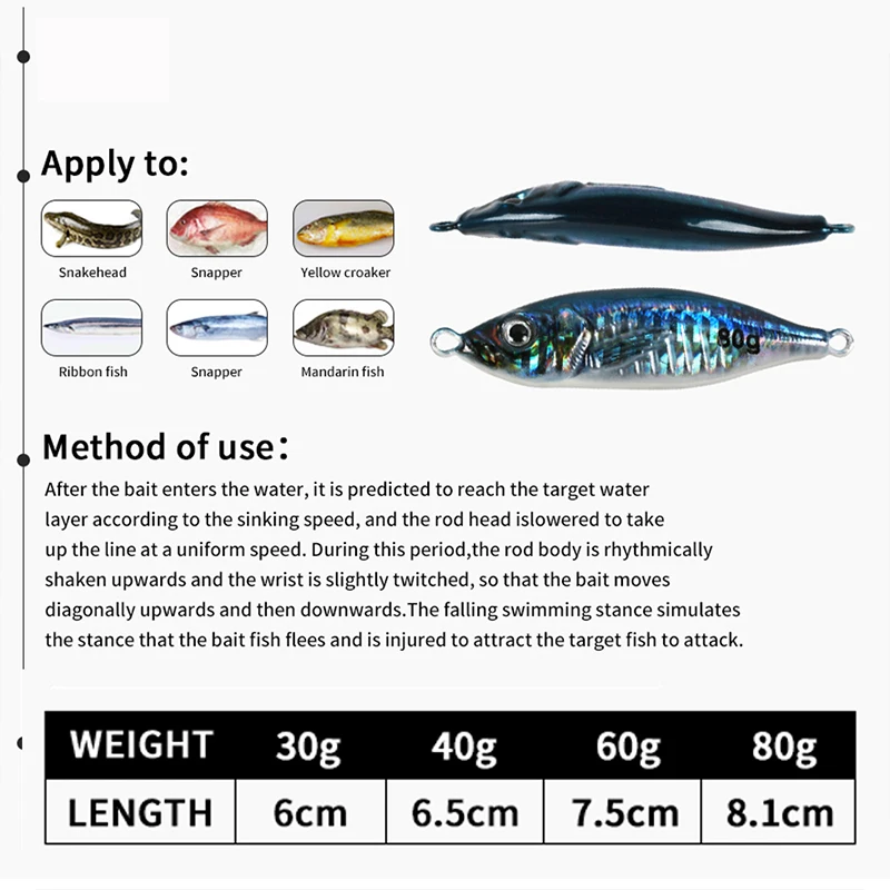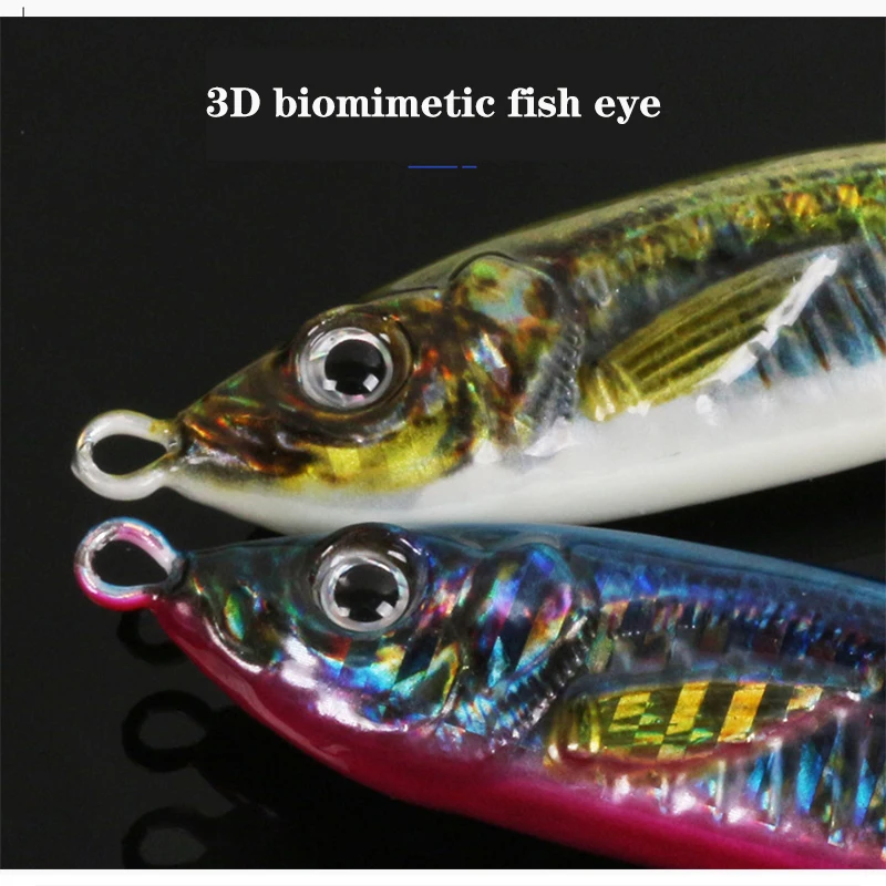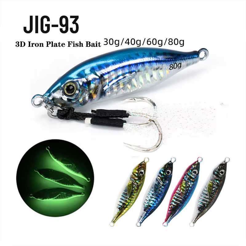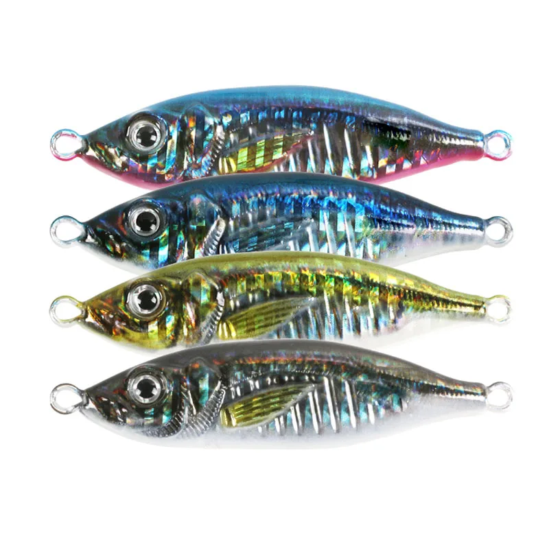 Cebo Wobbler 3D de 4 piezas, señuelo de pesca Artificial, 30g/40g/60g/80g, noctilucente, Little Jack Sink, gancho de Metal, cuchara giratoria
