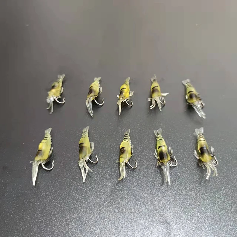 Cebos artificiales de 4cm y 1,3g, 10 unids/lote, señuelo de Camarón con ganchos de pesca, señuelo suave, cebo de pesca de camarón, pesca de carpa B220