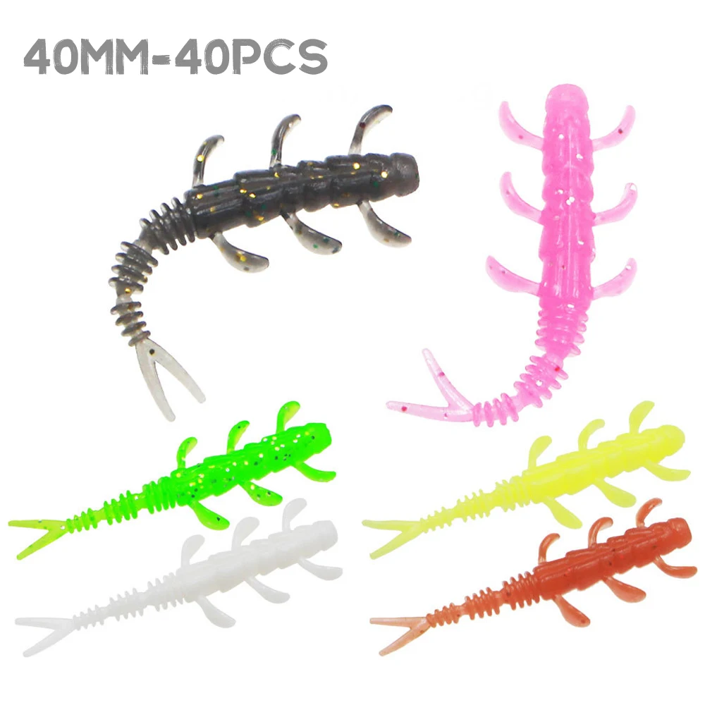 Cebos blandos de 40mm, 40 Uds., Swimbaits, Señuelos de Pesca con cola dividida en forma de V, señuelos de plástico para pesca de trucha lubina, agua salada y agua dulce
