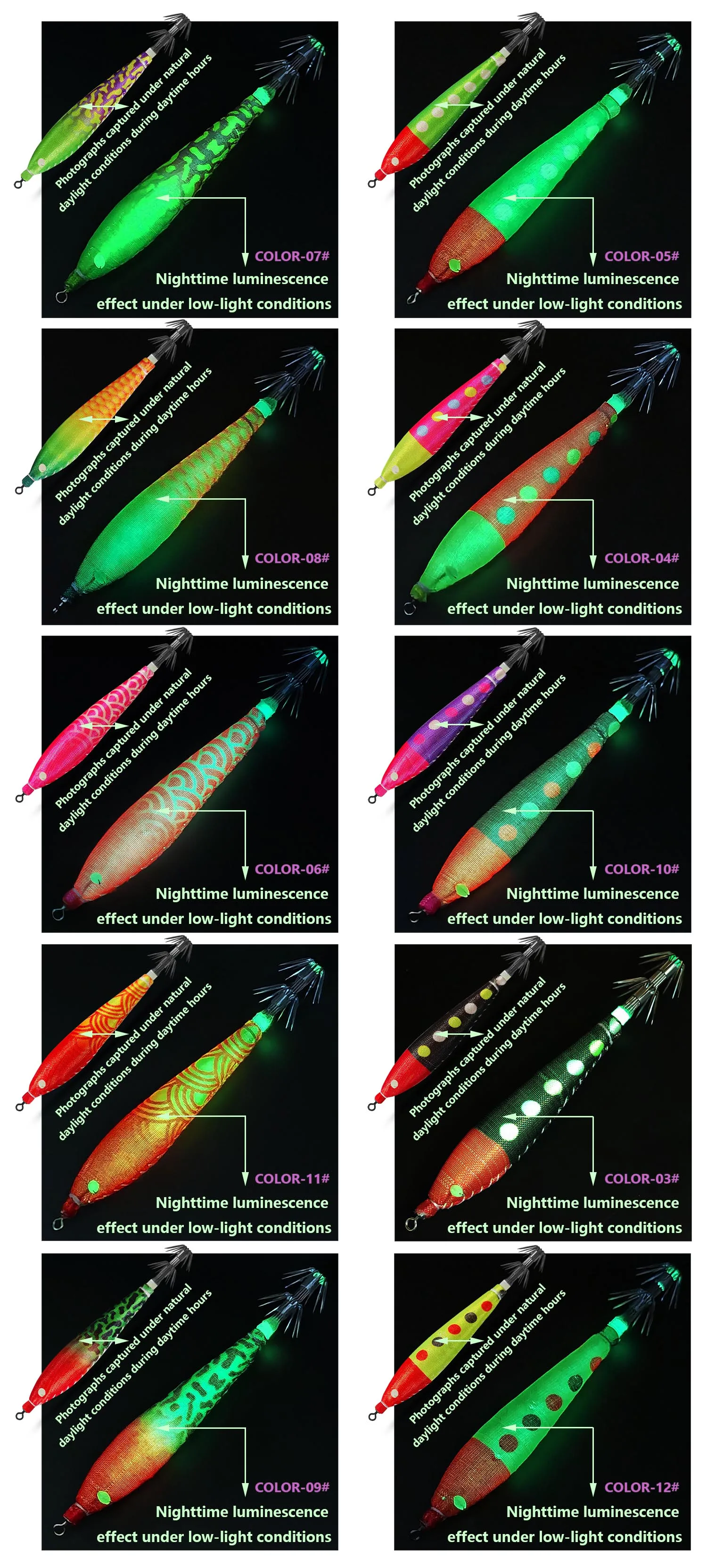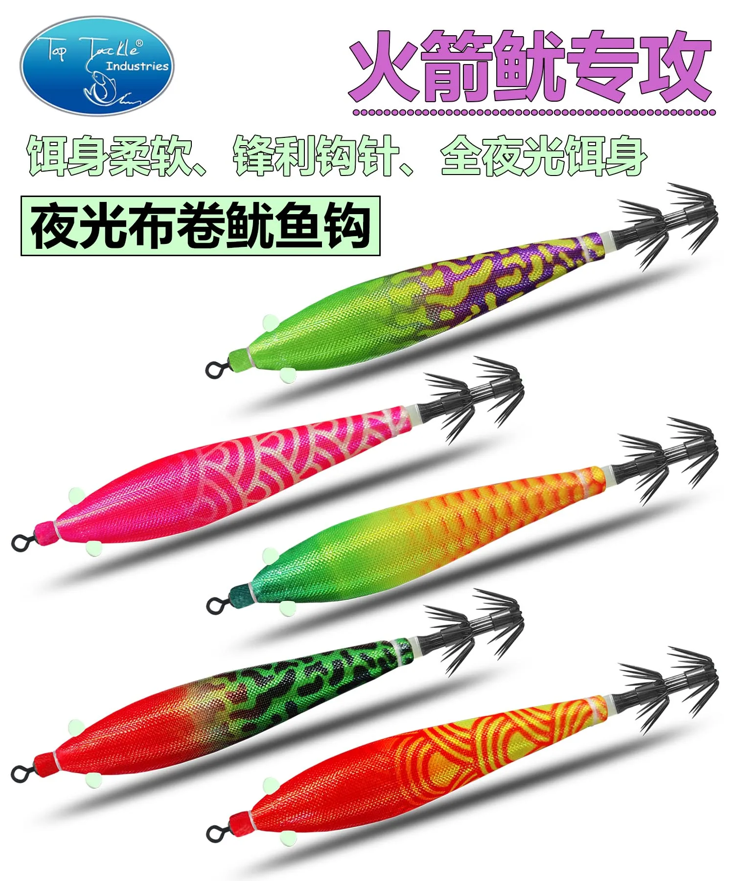 Cebos blandos de calamar para pesca en el mar, luz nocturna simulada, anzuelo de doble capa, cebo falso para pesca en el océano, 5 uds.