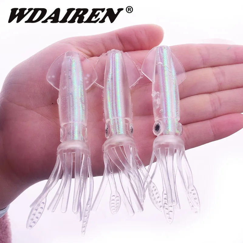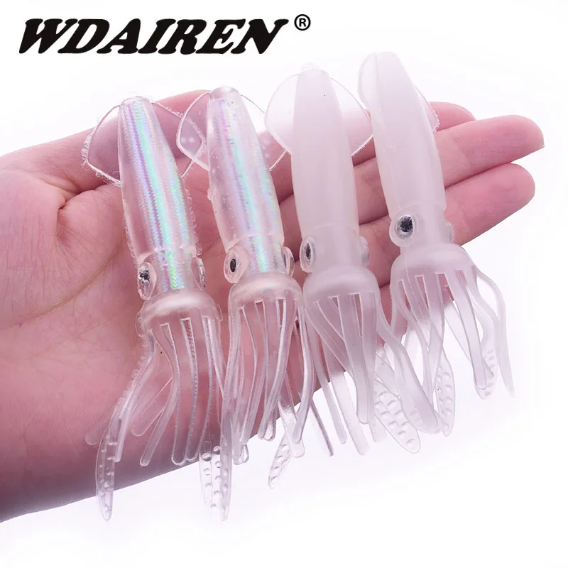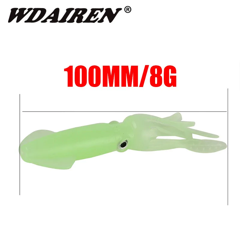 Cebos blandos con cola de garra, 2 uds., 10cm, 8g, pulpo biónico luminoso, calamar, vientre hueco, señuelo de pesca, aparejos de pesca de lubina