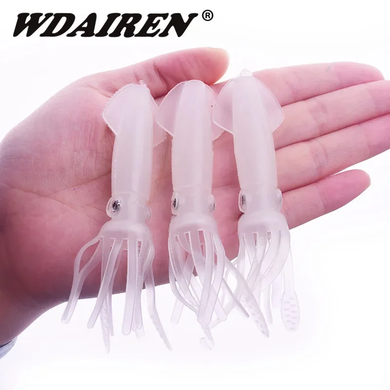 Cebos blandos con cola de garra, 2 uds., 10cm, 8g, pulpo biónico luminoso, calamar, vientre hueco, señuelo de pesca, aparejos de pesca de lubina