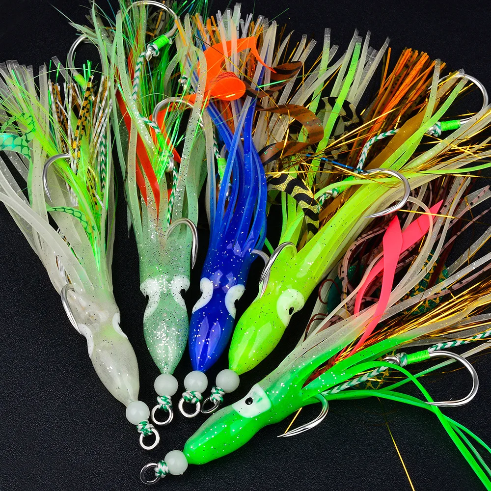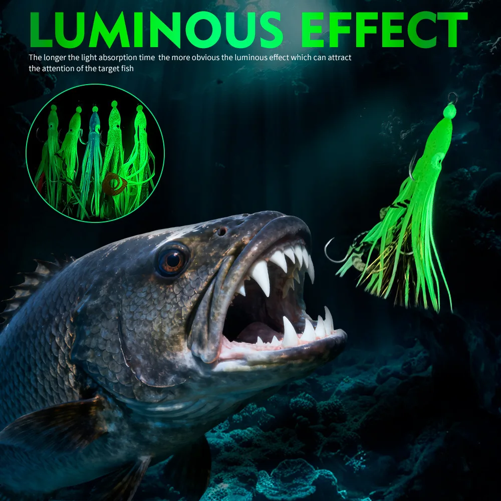 Cebos blandos de pulpo luminosos con anzuelos de jigging, señuelos de calamar de silicona coloridos para pesca nocturna, cebo de calamar, anzuelo de pesca Sabiki