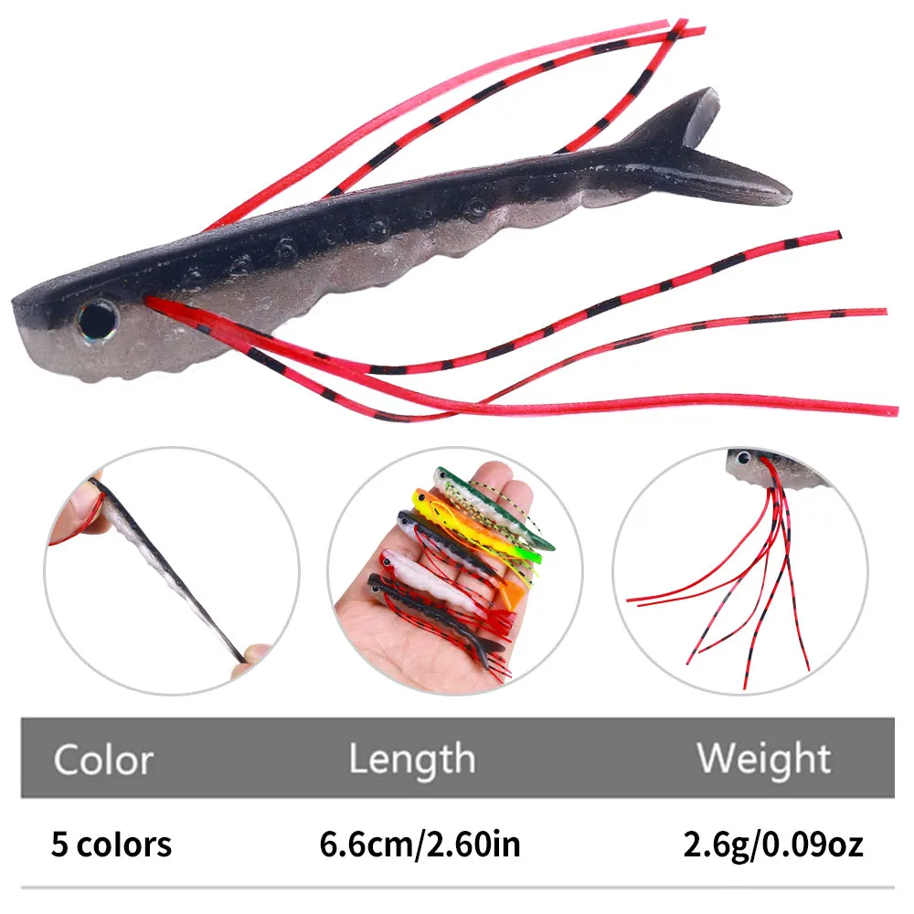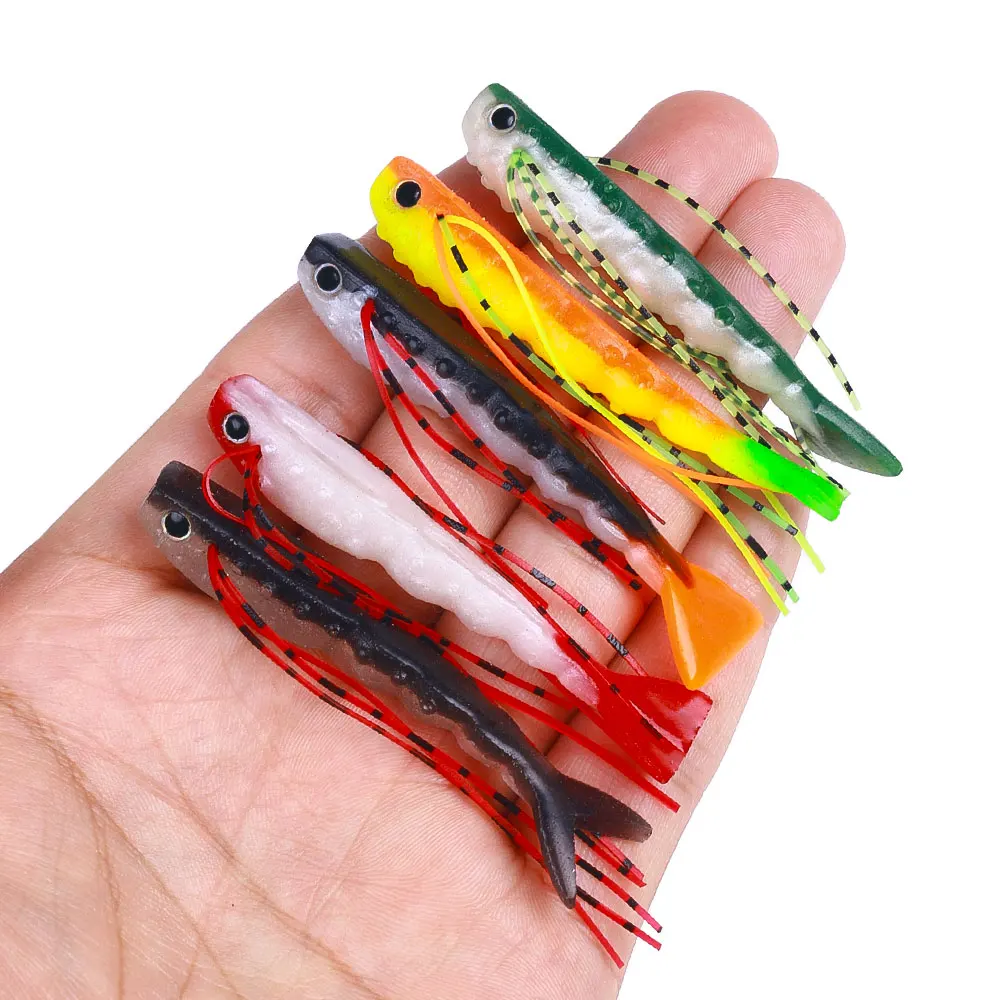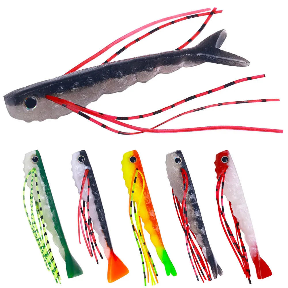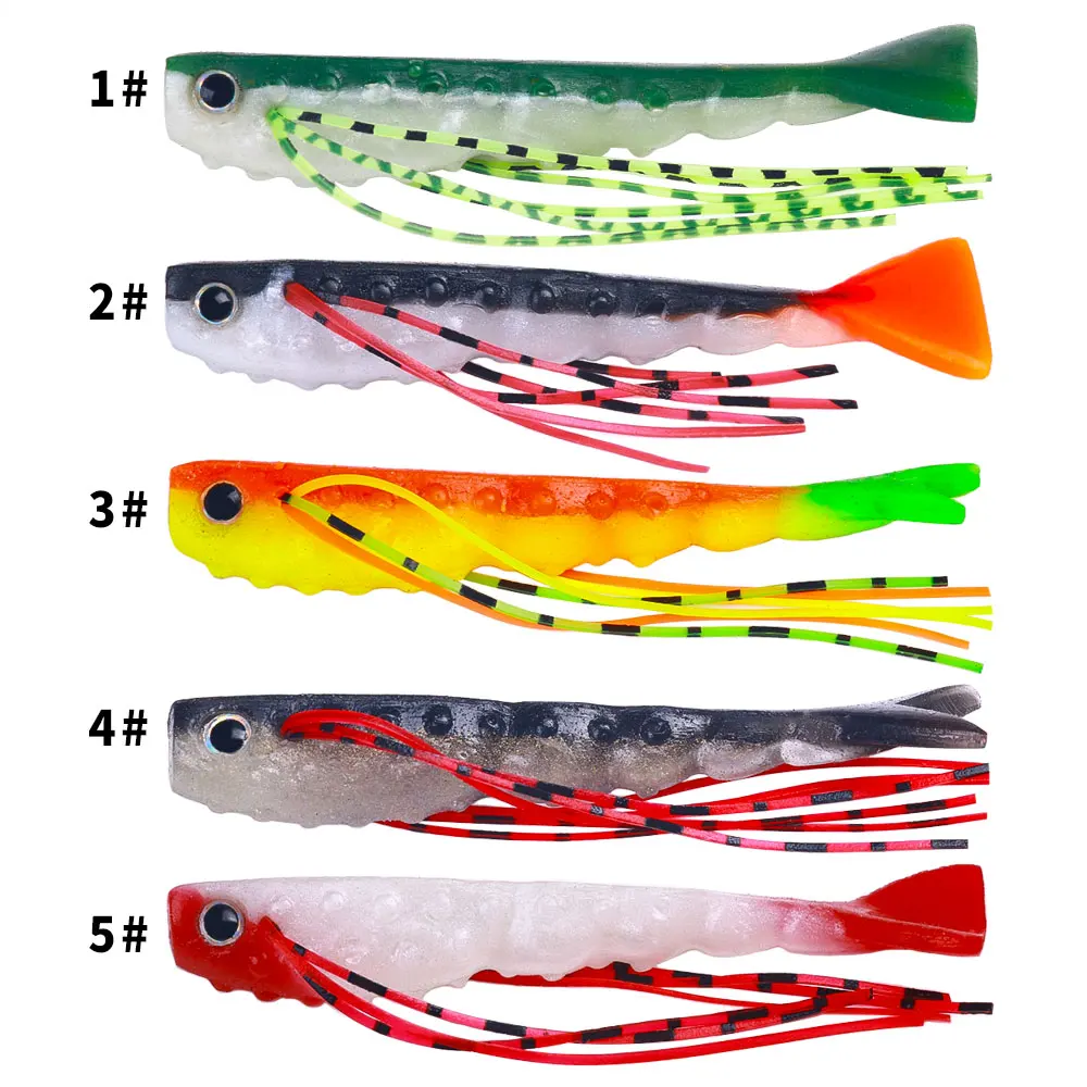 Cebos blandos de silicona con bigote, cebos de pesca de lubina, depredador de cola en V, Señuelos de Pesca de agua salada, 5 unids/lote por bolsa