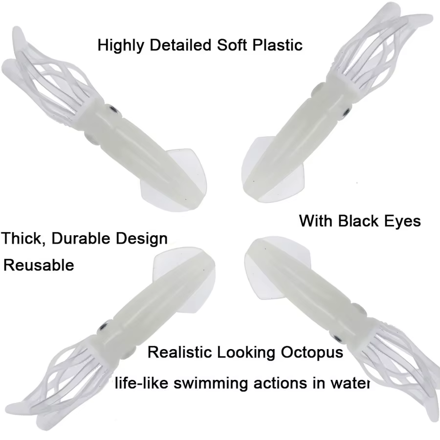 -Señuelos de pulpo mucho más largos que los cebos blandos tradicionales. Muy duradero, práctico y reutilizable.