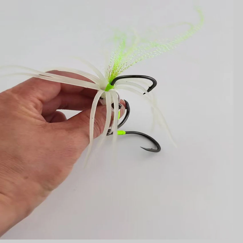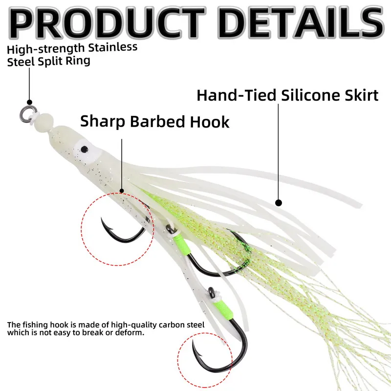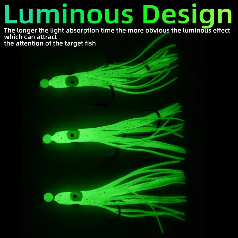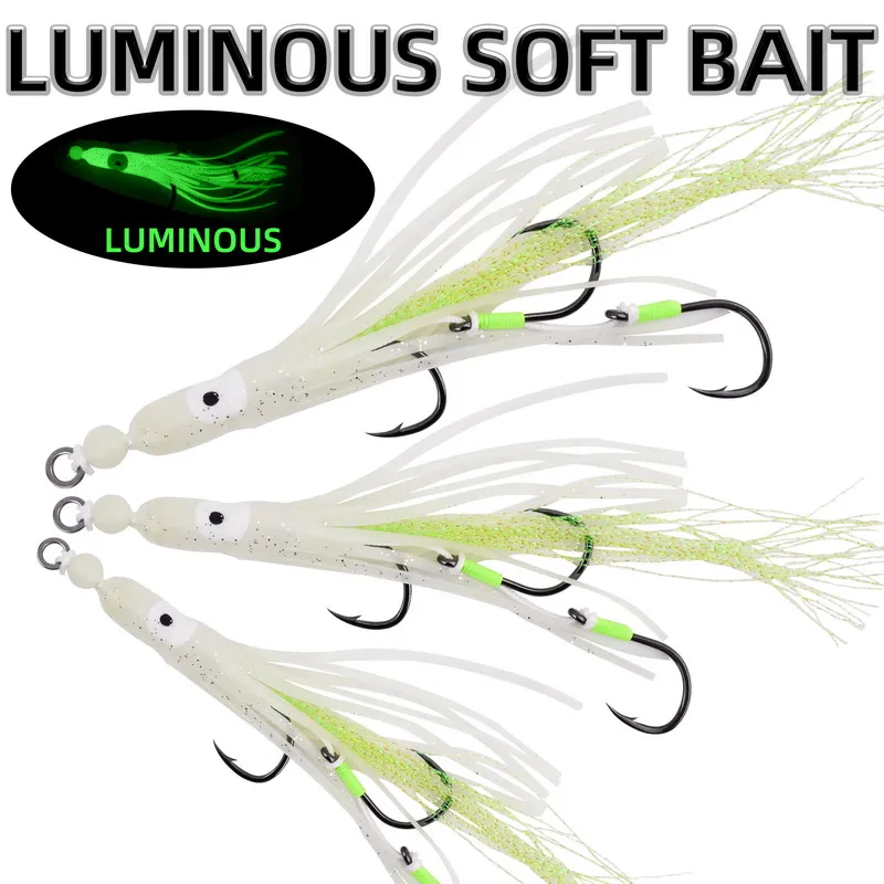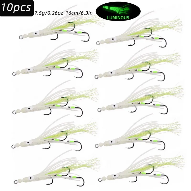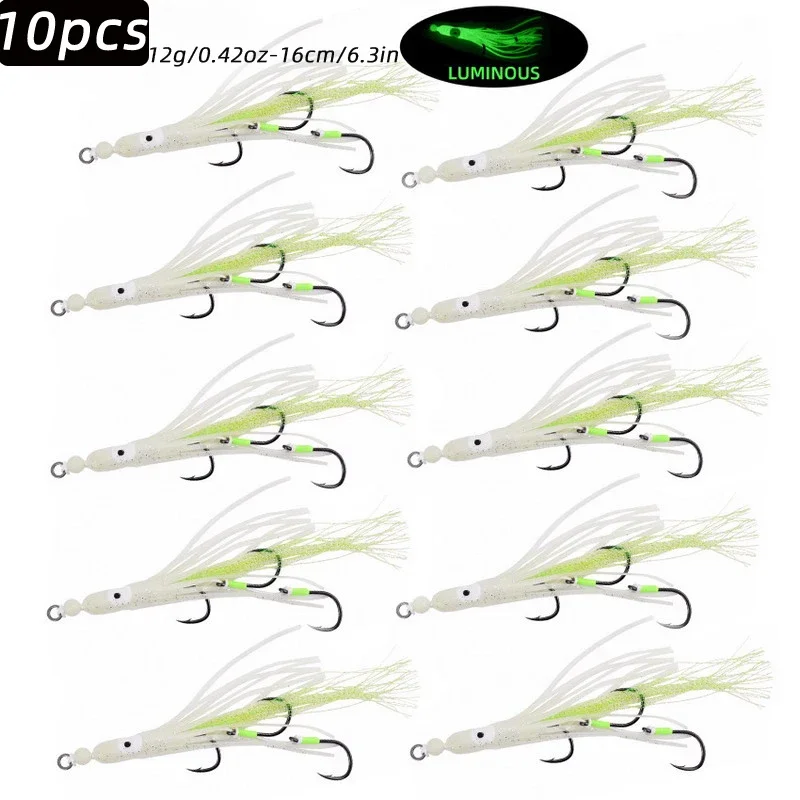 Cebos de calamar suaves con faldas de silicona y tres anzuelos auxiliares, Ideal para pesca en el mar, 10 Uds.