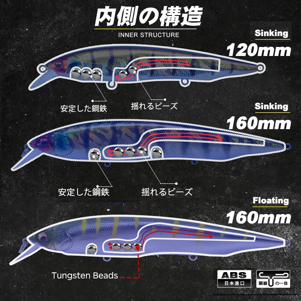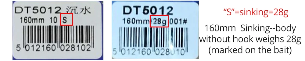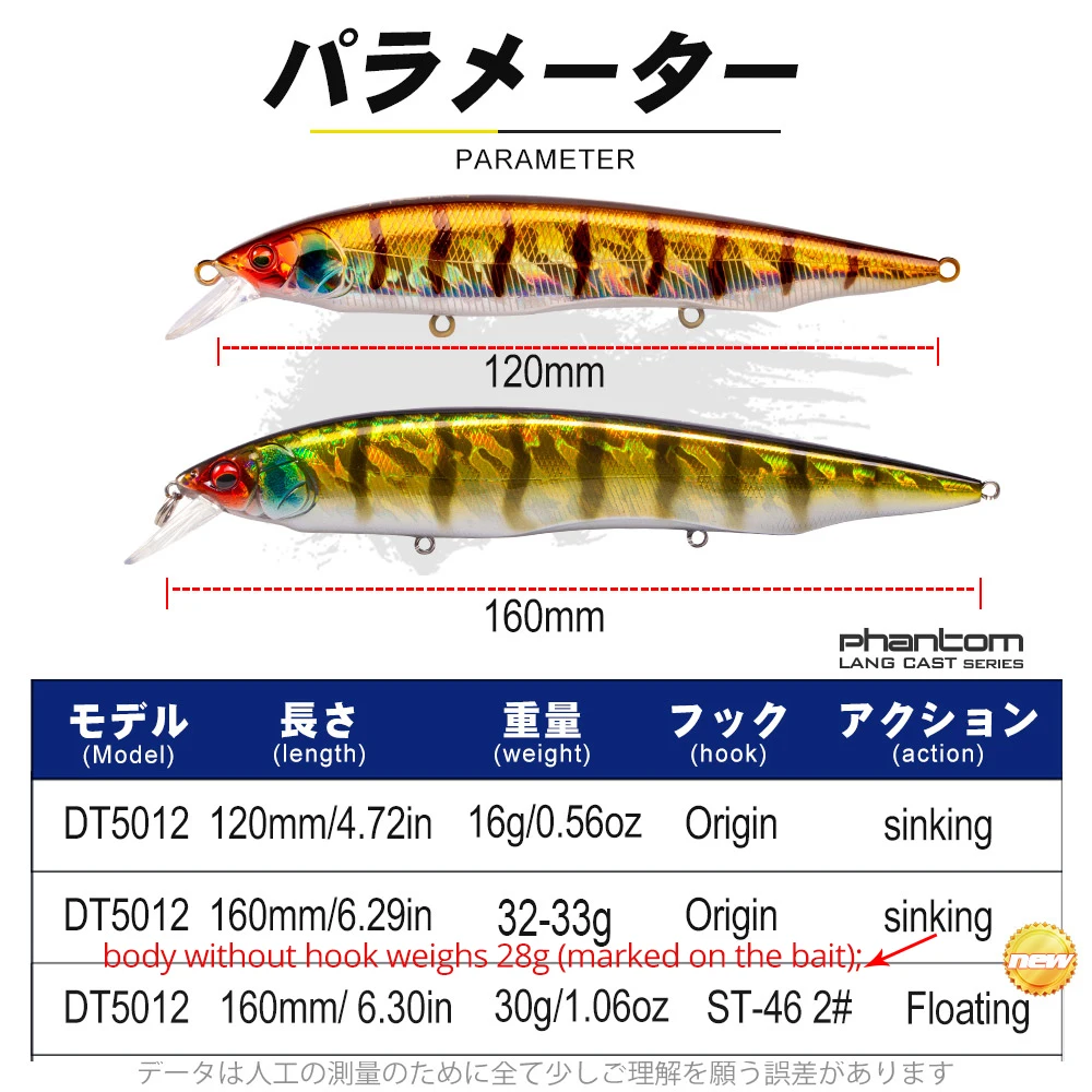 A hundimiento de 160 mm: el cuerpo sin anzuelo pesa 28 g (marcado en el cebo); el peso total es de 32 g-33 g (la medición manual tendrá un error de 1-2 g)