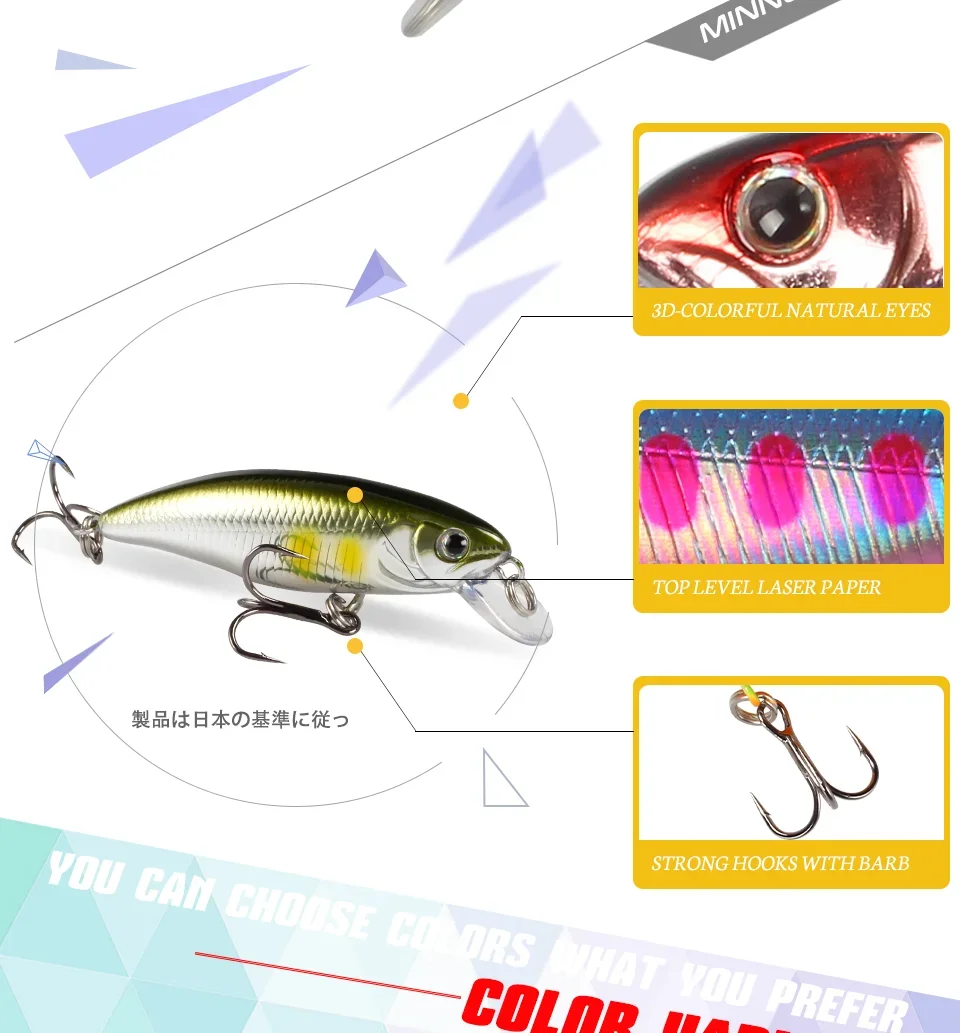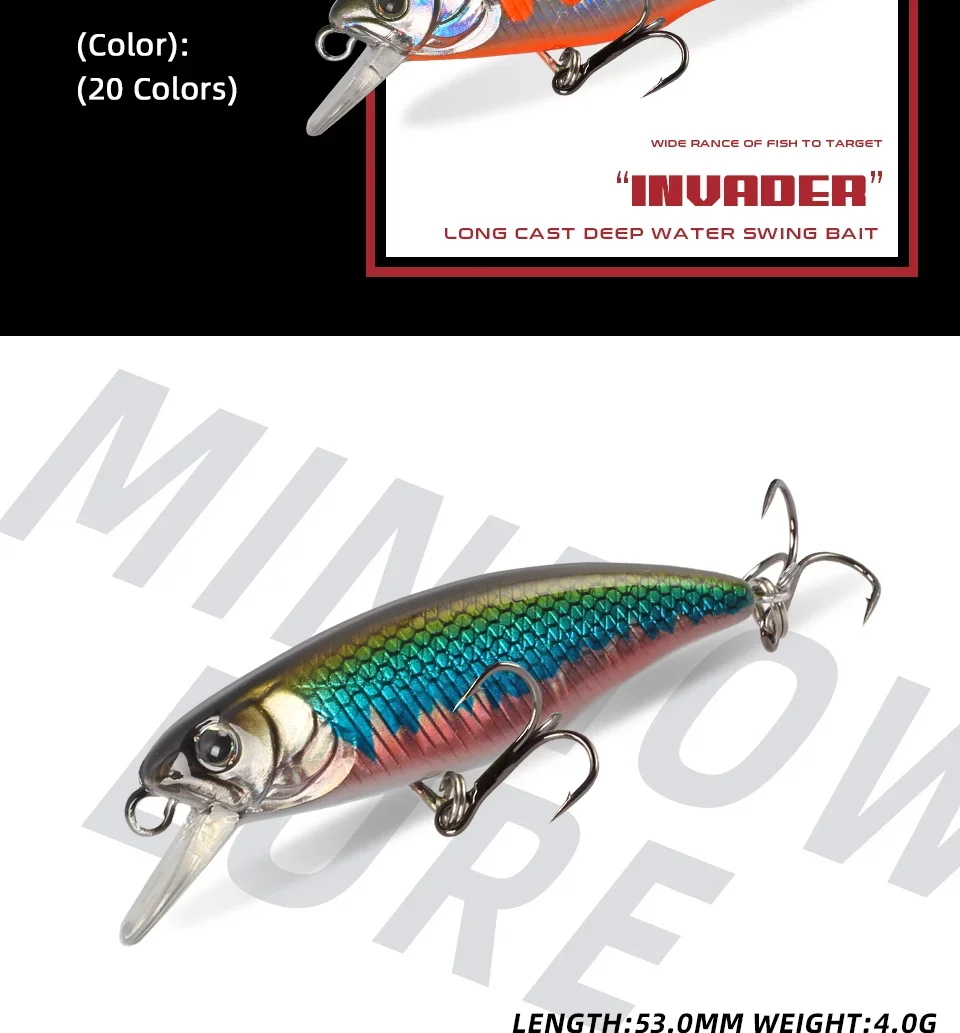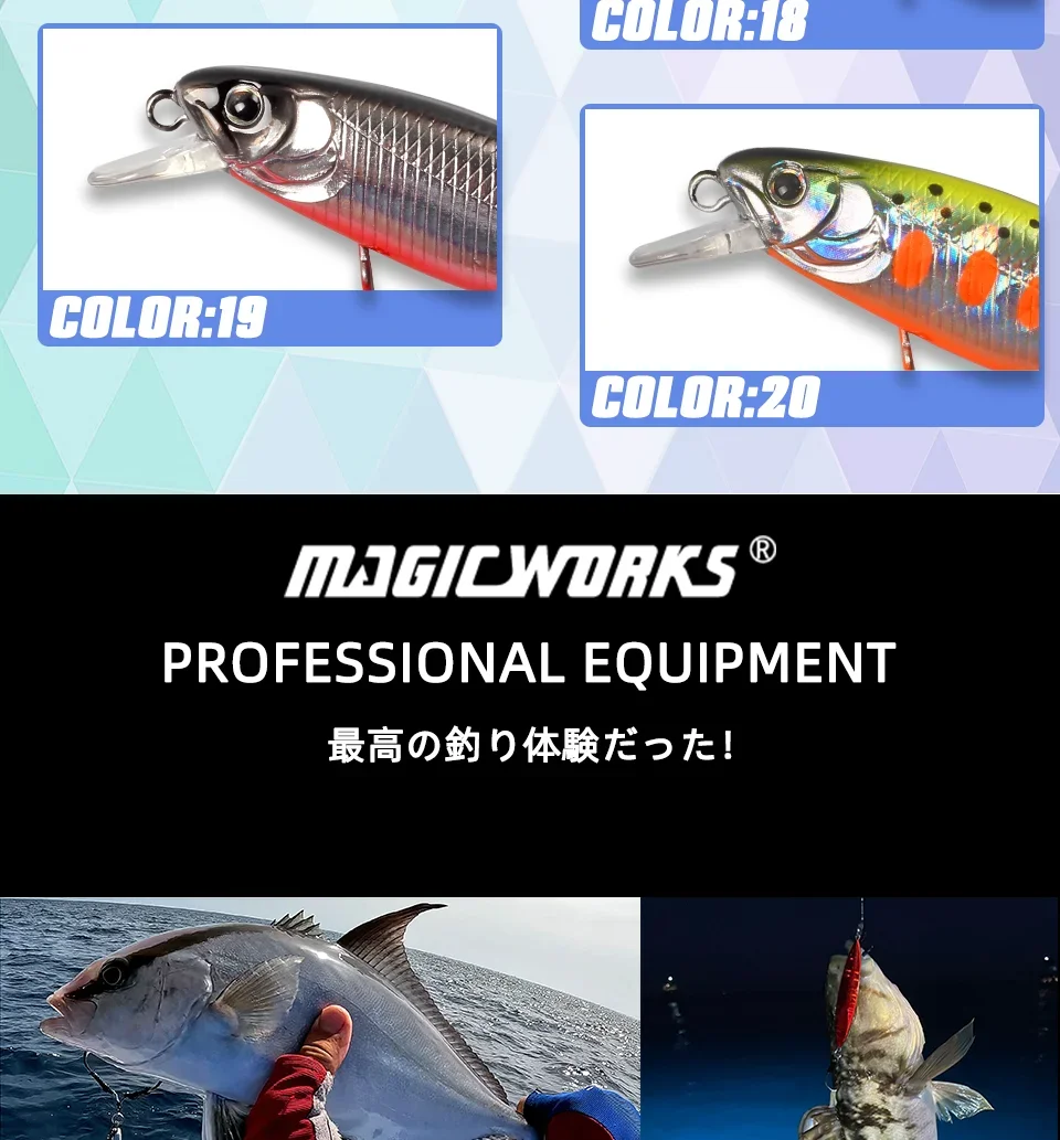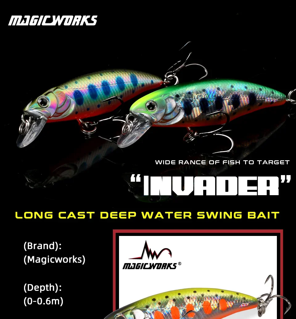 Magic Works cebos duros nuevo señuelo 2024 artículos de pesca 53MM señuelo de pececillo flotante Lucio de agua dulce Wobbler aparejos de cebo Artificial