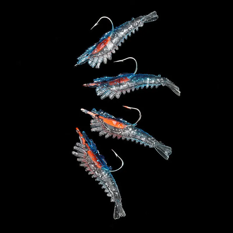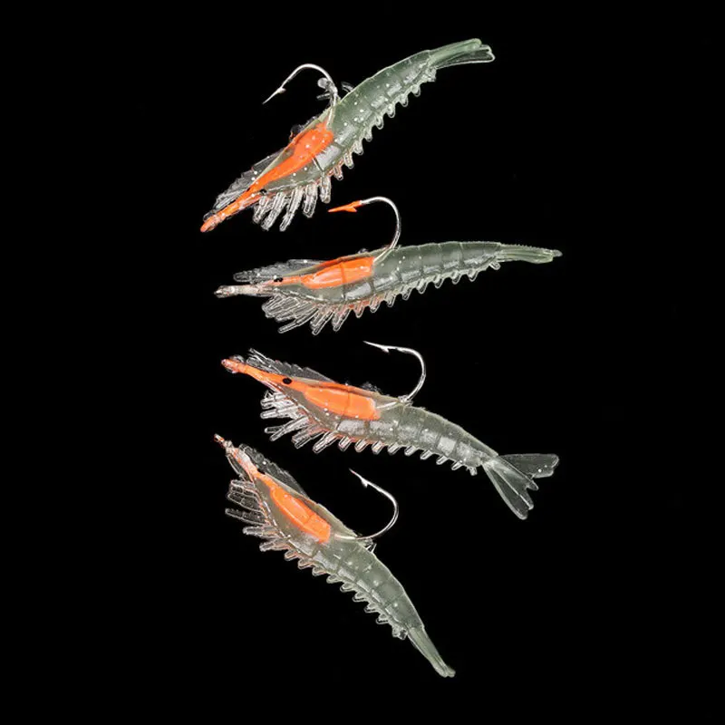 Cebos falsos de camarones luminosos, señuelo de gambas de simulación suave, olor a pescado, cebo de trucha con un solo anzuelo, pesca en el mar, 6cm, 3G, 1 pieza